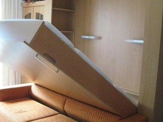 Wohnung Dach (2-6 Personen) hat ca. 75qm, mit Küche (E-Herd, Kühlschrank, Microwelle/BackofenCombi, Spülmaschine, Kaffeemaschine, Wasserkocher, Geschirr,usw), einem Schlafzimmer mit Doppelbett (Internet), 2 Zustellbetten und Schrankraum, ein