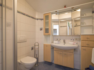 Wohnung West (2-5 Personen) hat ca. 65qm, mit Küche (Sitzecke,Diven, TV mit Sat, Internet, E-Herd, Backofen, Kühlschrank, Microwelle, Spülmaschine, Kaffeemaschine, Wasserkocher, Geschirr,usw.). Ein Schlafzimmer mit Doppelbett und evt. Zustellbett, ein