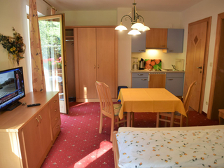 Exklusives Appartment für 1-2 Personen, Teeküche mit Sitzecke, DU/WC mit Fußbodenheizung, Balkon oder Terrasse mit Liegewiese, SAT-TV, Internetzugang. Kinderermässigung bei Anfrage!