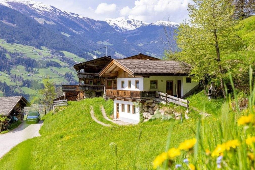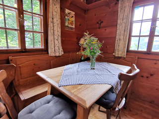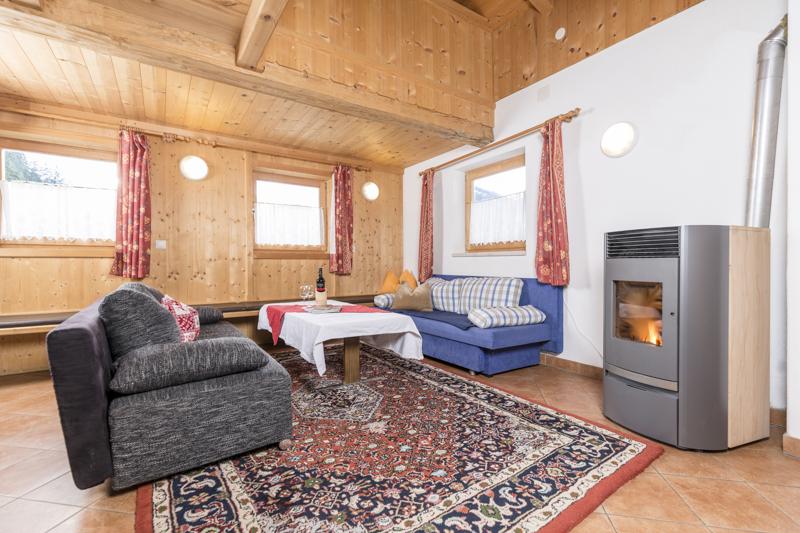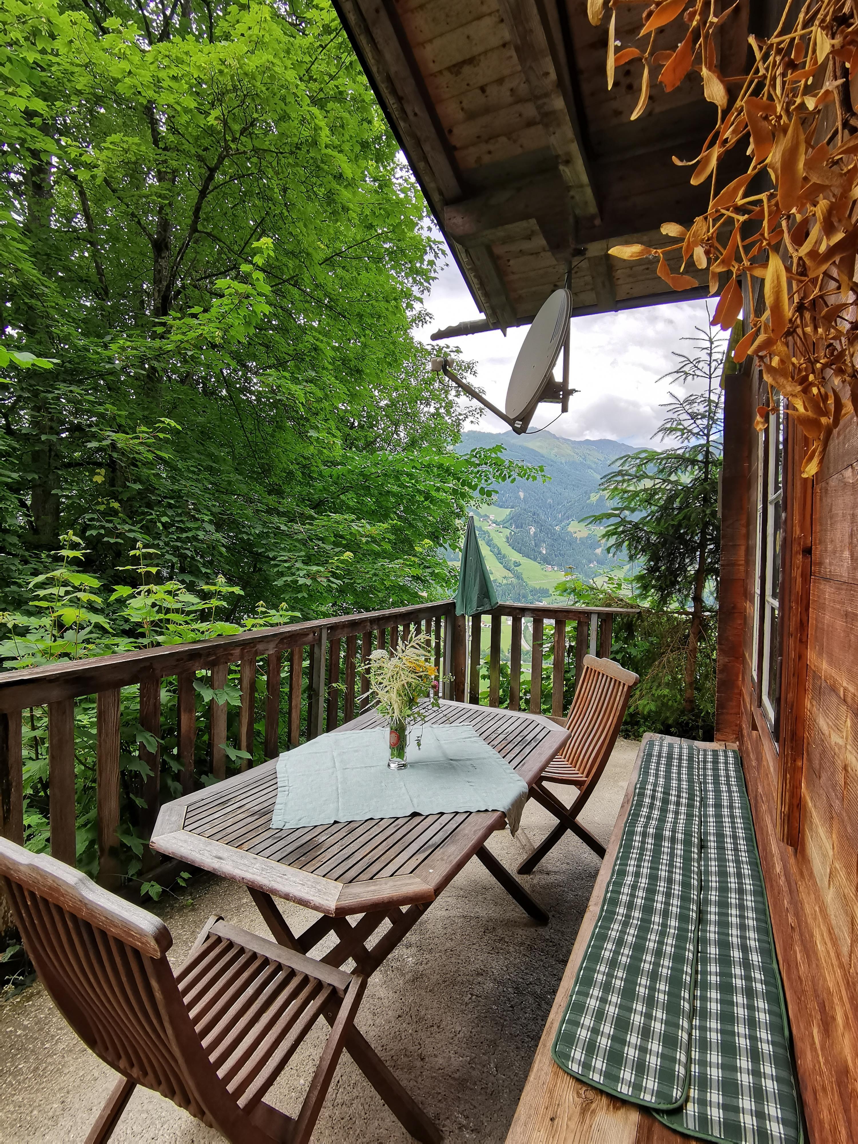 Ferienhütte am Waldrand im Tiroler Holzblock Stil, Küche komplett, ganzjährig Sonne, herrliche Aussicht, Schigebiet in 5 Minuten mit Auto erreichbar, SAT/TV, DU/WC, Holzofen, Bettwäsche;