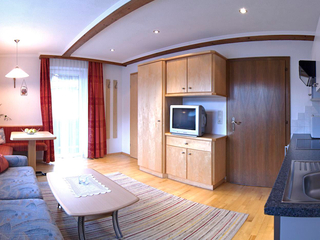 Unsere gemütlich eingerichtete Ferienwohnung verfügt über die folgende Ausstattung: eine Wohnküche mit gemütlicher Sitzecke, Schlafsofa, SAT-TV, Küchenblock mit Backrohr und Mikrowelle, Kaffeemaschine, Wasserkocher, Toaster ein Schlafzimmer mit Dusche,