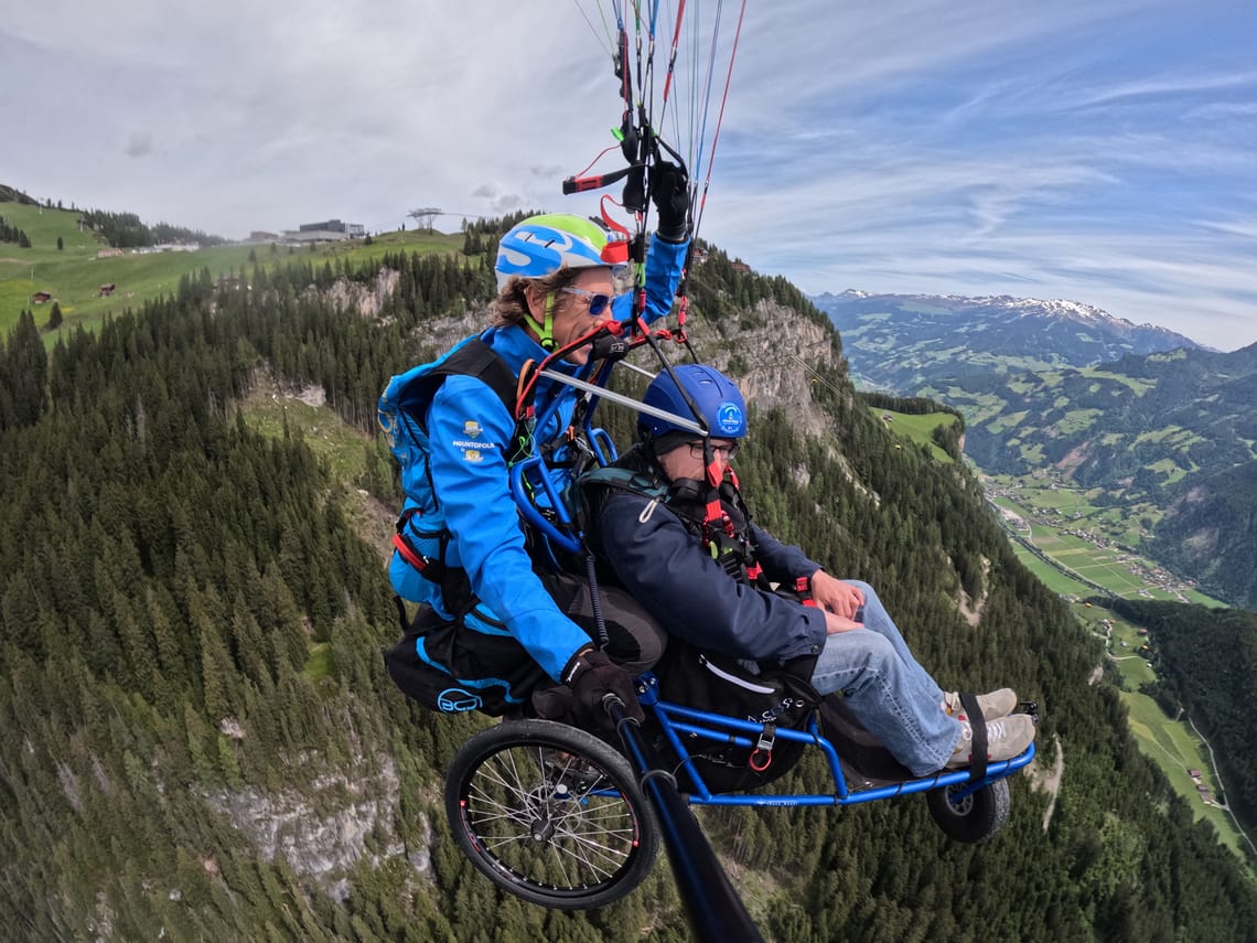 „Wheels4flying“ ist der erste Verein in Österreich, der in Mayrhofen im Zillertal Tandem-Gleitschirmflüge und Solo-Flugtraining für Menschen mit Behinderungen ermöglicht. Dabei kommen speziell geschulte Piloten und auch ein speziell zertifizierter Flugstuhl zum Einsatz. Mach deinen Traum vom Fliegen wahr und buche deinen Flug direkt hier! Dank spezieller Ausrüstung ermöglicht Wheels4Flying Tandem-Gleitschirmflüge für Passagiere ab 6 Jahren und einem Körpergewicht bis zu 90kg. Bei Nutzung elektronischer medizinischer Geräte (z.B. Herzschrittmacher) ist vorab eine ärztliche Bescheinigung erforderlich.