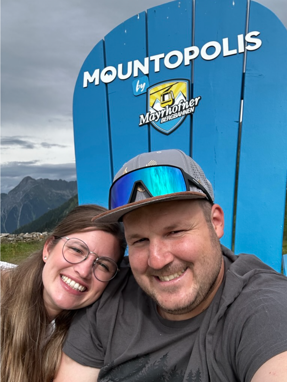 Wir, Anna und Steffen, sind freitags ganz entspannt auf dem Campingplatz in Mayrhofen angekommen und haben uns nachmittags nach dem Ausladen auf den Weg zur Ahornbahn gemacht. Das Wetter war leider sehr durchwachsen und es hat immer wieder mal geregnet, aber wir waren guter Dinge und hatten uns extra ordentliches Schuhwerk angezogen, um uns am Ahorn noch ein bisschen umzuschauen. An der Kassa haben wir ganz unkompliziert ein Ticket für die Berg- und Talfahrt bekommen. Die Tickets kann man generell entweder am Automaten lösen oder am Schalter kaufen. Der Aufgang zur Gondel ist leicht begehbar und man kommt auch mit einem Rollstuhl oder Kinderwagen hoch. Durchs Drehkreuz durch haben wir kurz auf die Gondel gewartet und sind dann entgegen der meisten Menschen, die gegen 17.00 Uhr nach unten kommen, nach oben gefahren. Oben angekommen sind verschiedenen Wanderwege und auch Ausflugsziele ausgeschildert, aber auch große Holzbuchstaben zeigen schick, wo man sich befindet. Da es erst kurz nach 17.00 Uhr war, haben wir uns dafür entschieden den GenießerRundWeg zu erkunden und da es recht ruhig war am Berg, konnten wir ganz gemütlich eine Runde spazieren gehen und haben uns erst die historische Gondel angeschaut, die die Entstehung des Tourismus am Ahorn zeigt. Dann sind wir zu den verschiedenen AussichtsPlattformen gewandert. Von allen AussichtsPlattformen hat man immer wieder eine super schöne Aussicht ins Tal und ist so zu später Stunde auch ganz ungestört und kann den Flair der Berge richtig genießen. Anschließend wanderten wir über die Filzenalm zurück zur Bergstation der Ahornbahn, um dort im Café-Bistro FreiRaum ein Abendessen mit atemberaubenden Panoramablick auf Mayrhofen zu genießen.