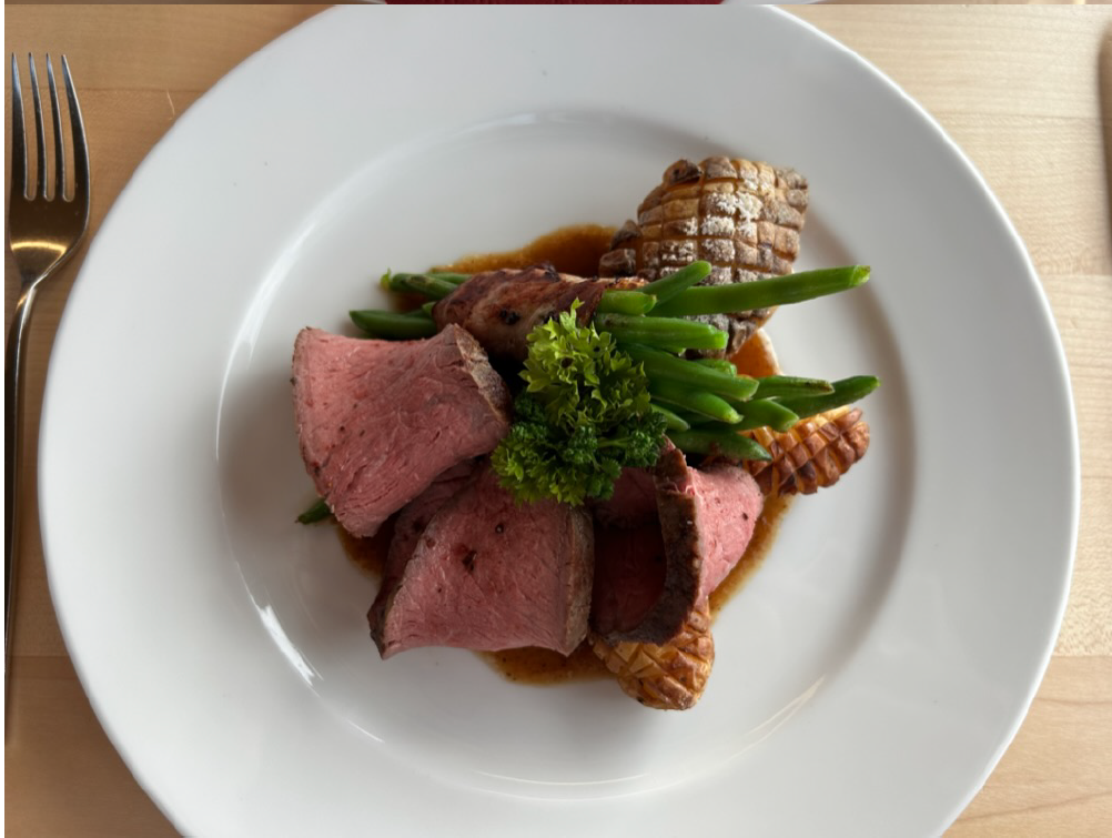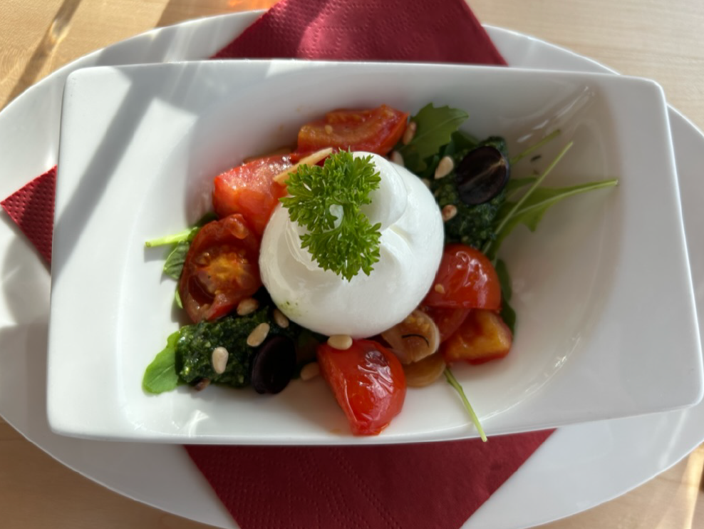 Wir hatten ein Zeitfenster von drei Stunden bis zum Sonnenuntergang und haben uns daher dazu entschieden, mit einem Aperitif zu starten und mit dem Essen noch zu warten. Auf unseren Wunsch wurde dann mit dem ersten Gang gestartet. Ein Lob an die Küche, das Essen war sehr lecker! Auch die Kellnerin war den ganzen Abend super freundlich und zuvorkommend und richtig auf Zack. Danke für den super Service. Wir hatten einen Tisch direkt am Fenster mit Aussicht dahin, wo die Sonne untergeht.