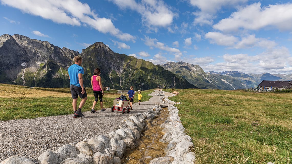Unser Tipp für Familien: Entdecke den kinderwagentauglichen GenießerRundWeg mit einem unserer Bollerwägen, die an der Bergstation der Ahornbahn kostenlos zum Verleih bereitstehen (nach Verfügbarkeit). Am GenießerRundWeg verweilst du am besten an einer der fünf AussichtsPlattformen AdlerAuge, AdlerBlick, Zillertal, Stilluptal oder Filzenalm oder entspannst am GenussPlatz am Vorplatz der Bergstation sowie an einem der zahlreichen Wohlfühlplätze.