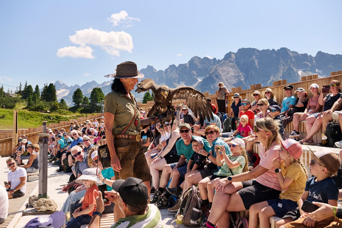 Man sieht, Freigeister und wilde „Vögel“ fühlen sich am Ahorn den ganzen Tag über wohl. Sogar so wohl, dass es mit der AdlerBühne Ahorn an der FalknerOase die höchstgelegene GreifVogelStation Europas auf 2.000 Metern bereits seit mehr als 10 Jahren gibt. Adler, Bussarde, Uhus und Co. lassen sich bei der einstündigen GreifVogelVorführung täglich um 14.00 Uhr (außer freitags) bestaunen. AlbertAdler SpieleWelt by Ravensburger - Gemeinsam mit Ravensburger wurde eine spannende und abwechslungsreiche Indoor-Spielewelt direkt an der Bergstation der Ahornbahn auf rund 140m² erschaffen. Ausgestattet mit einer großen Kletterwand, einem Spielehäuschen mit Büchern und Brettspielen, einem Adlernest mit Hörstationen, GraviTrax- und Brio-Spieltischen sowie Riesenpuzzle und -memory.