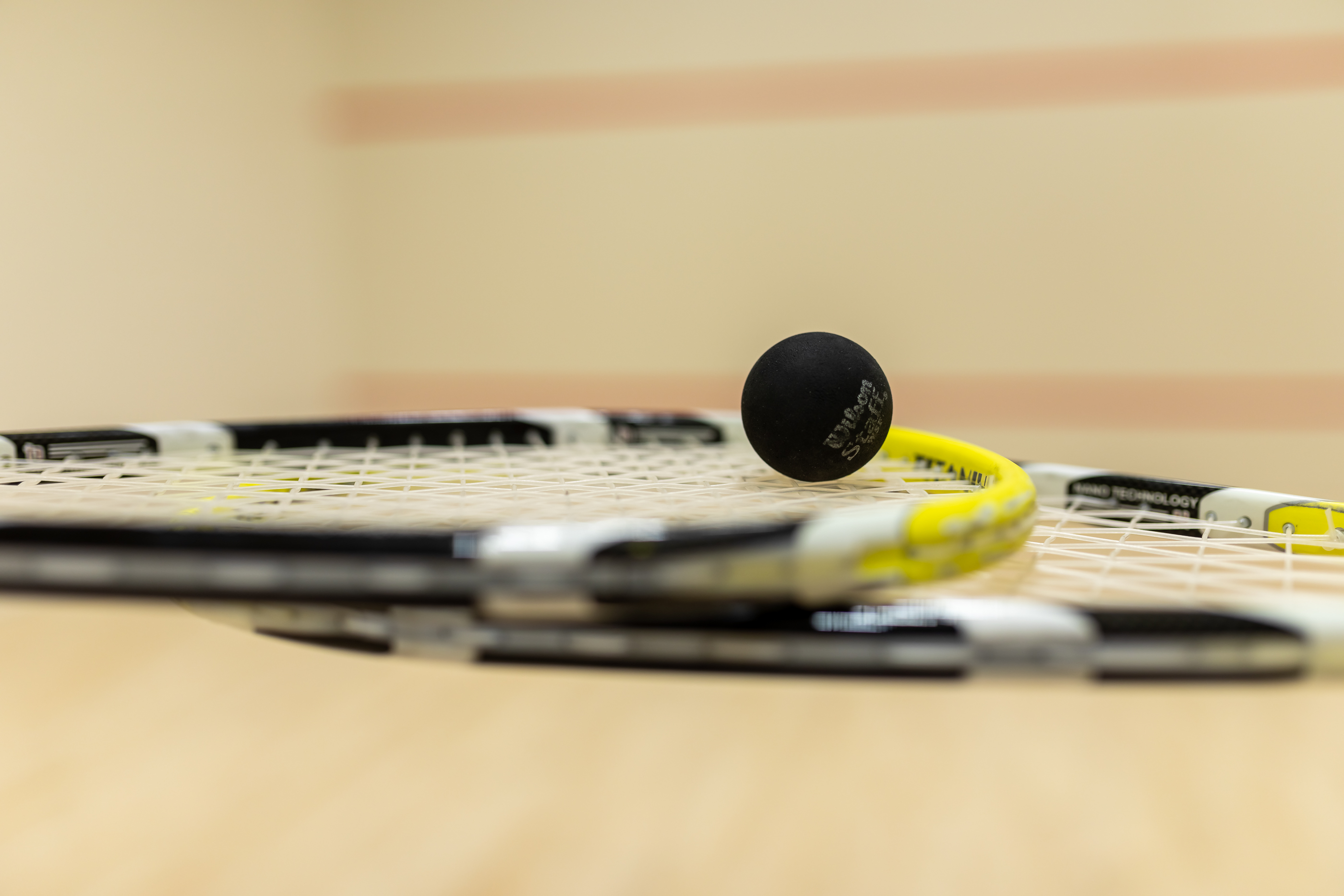 court with parquet floor State-of-the-art equipment LED lighting system Spectator seating Racket hir