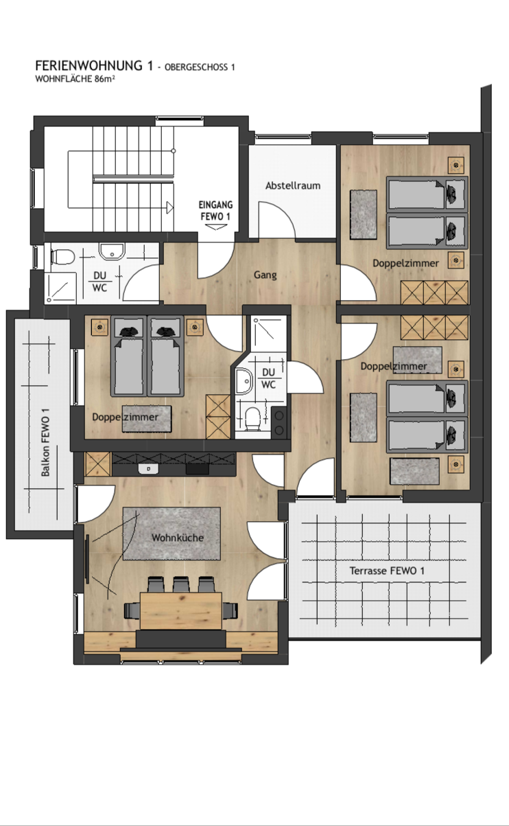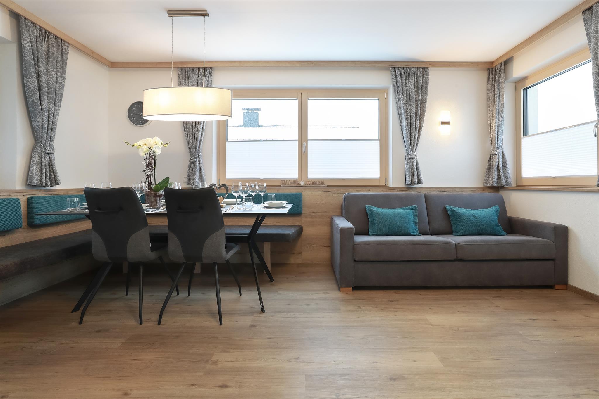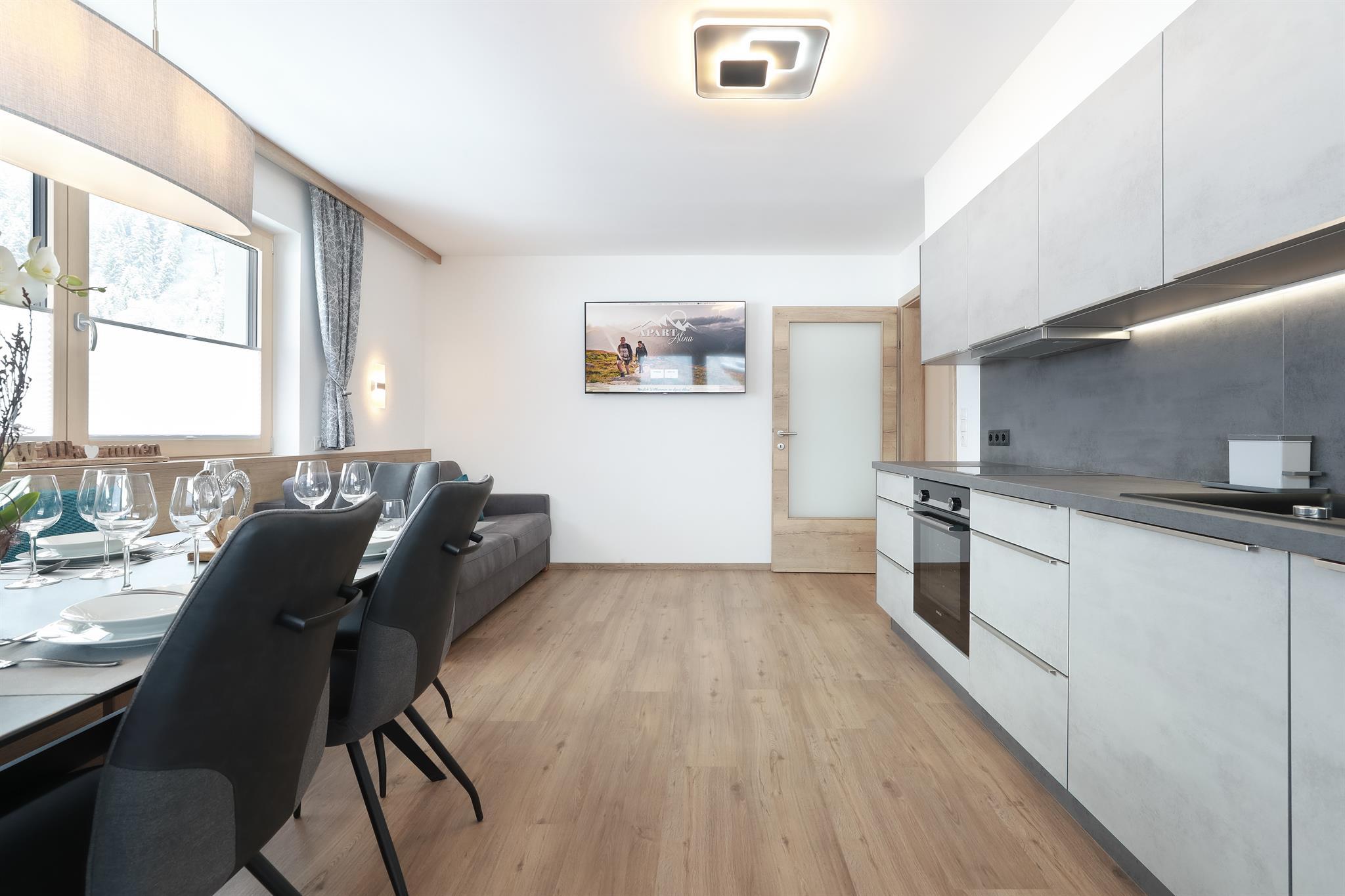 Spend a cozy eventing with family or friends in the spacious eat-in kitchen after an action-packed day. Relax on the terrace or balcony dureing the day surrounded by the picturesque mountains. The apartment is just right for your relaxing summer or winter