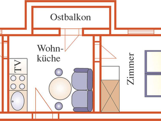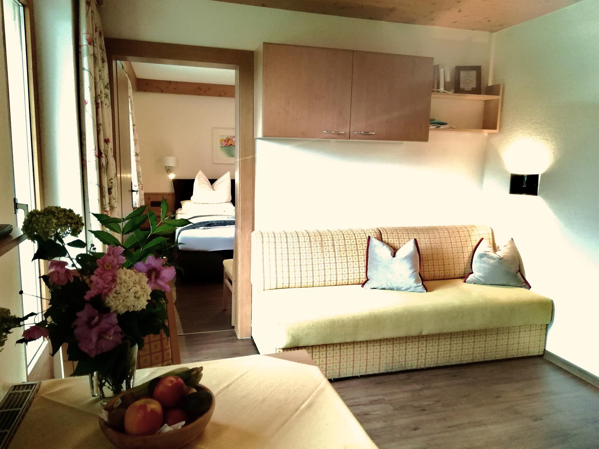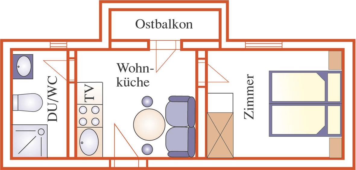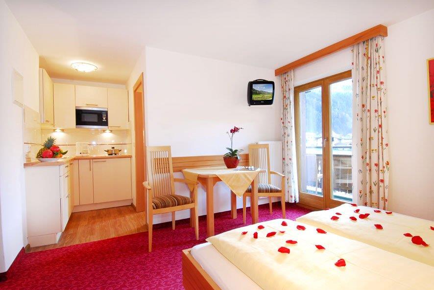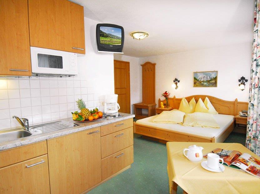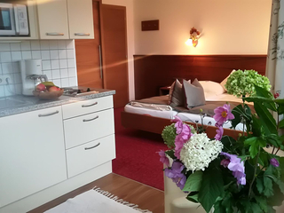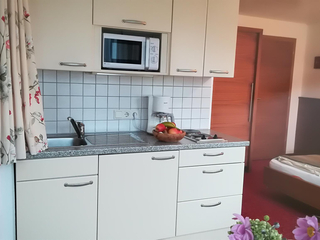 Studio for 2 persons, 22m², lounge/bedroom with seating area, cable TV, kitchenette, shower/WC, safe, south-facing balcony, free Wi-Fi, nicely furnished. Includes TV, electricity, heating, bed linen, crockery. Find out more about our early booking