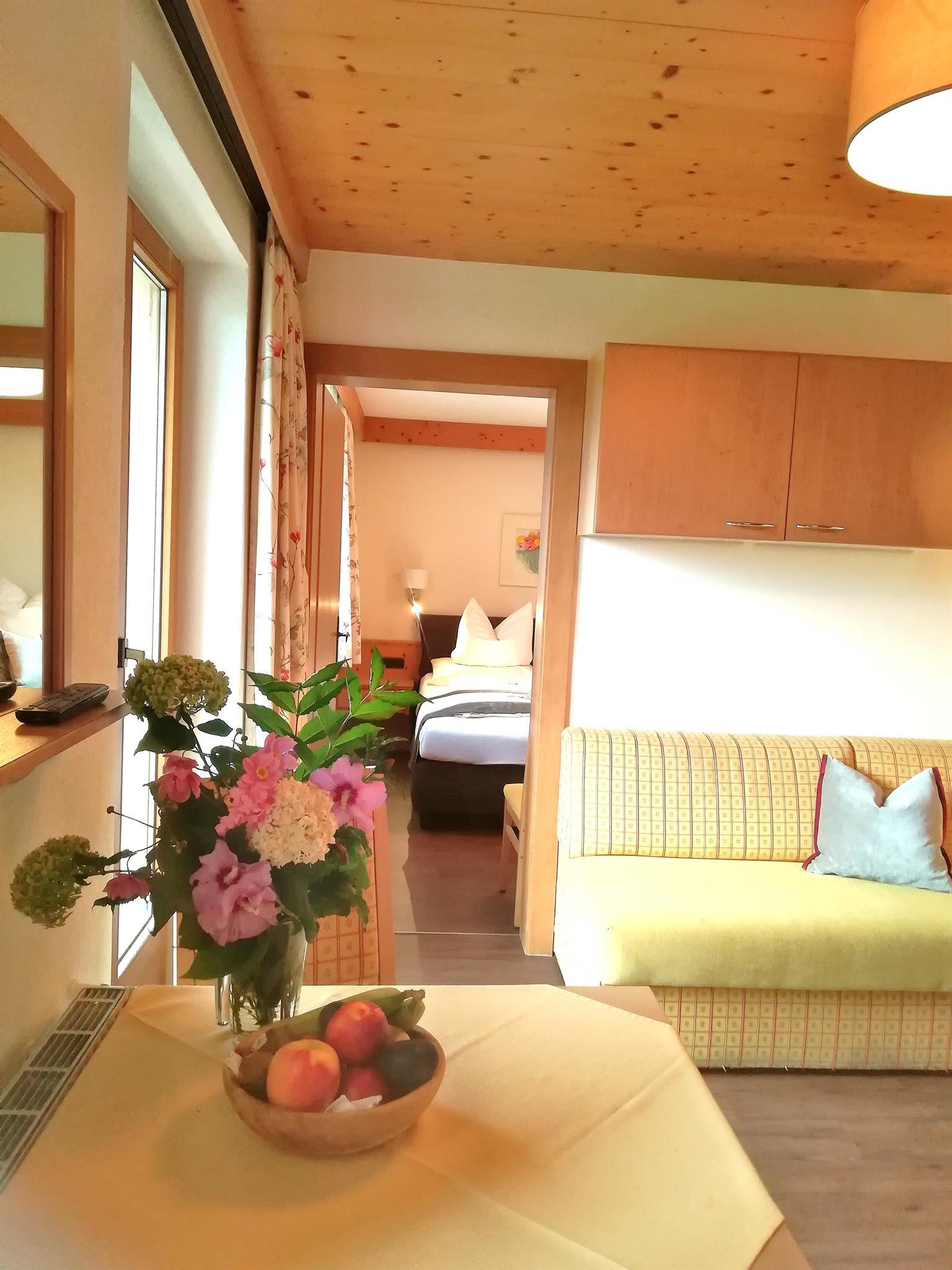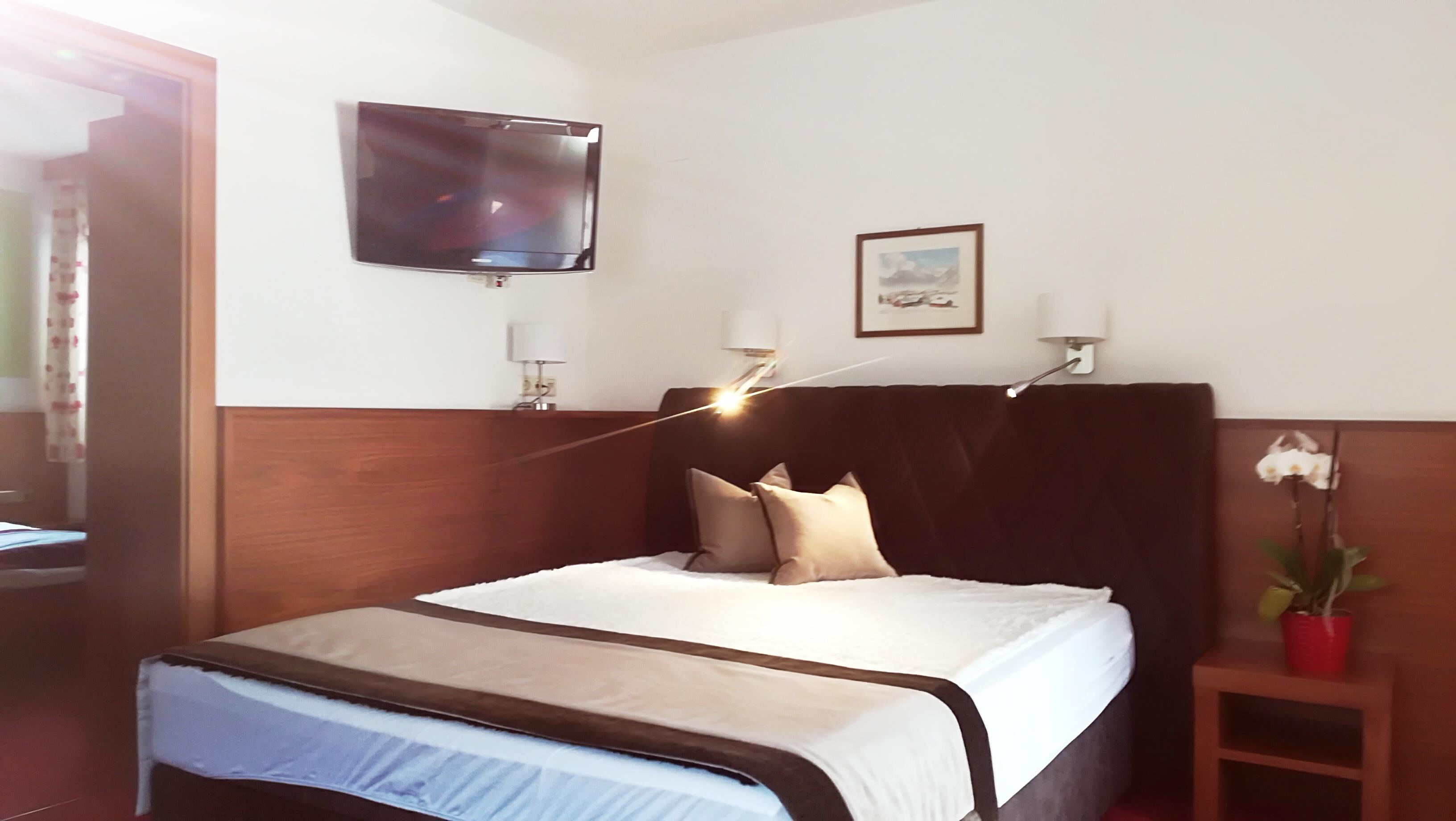 Newly renovated double room with shower or bath/WC, cable TV, safe, furnished balcony with views of the Zillertal Mountains, hairdryer, breakfast buffet. Free Wi-Fi in the entire building.