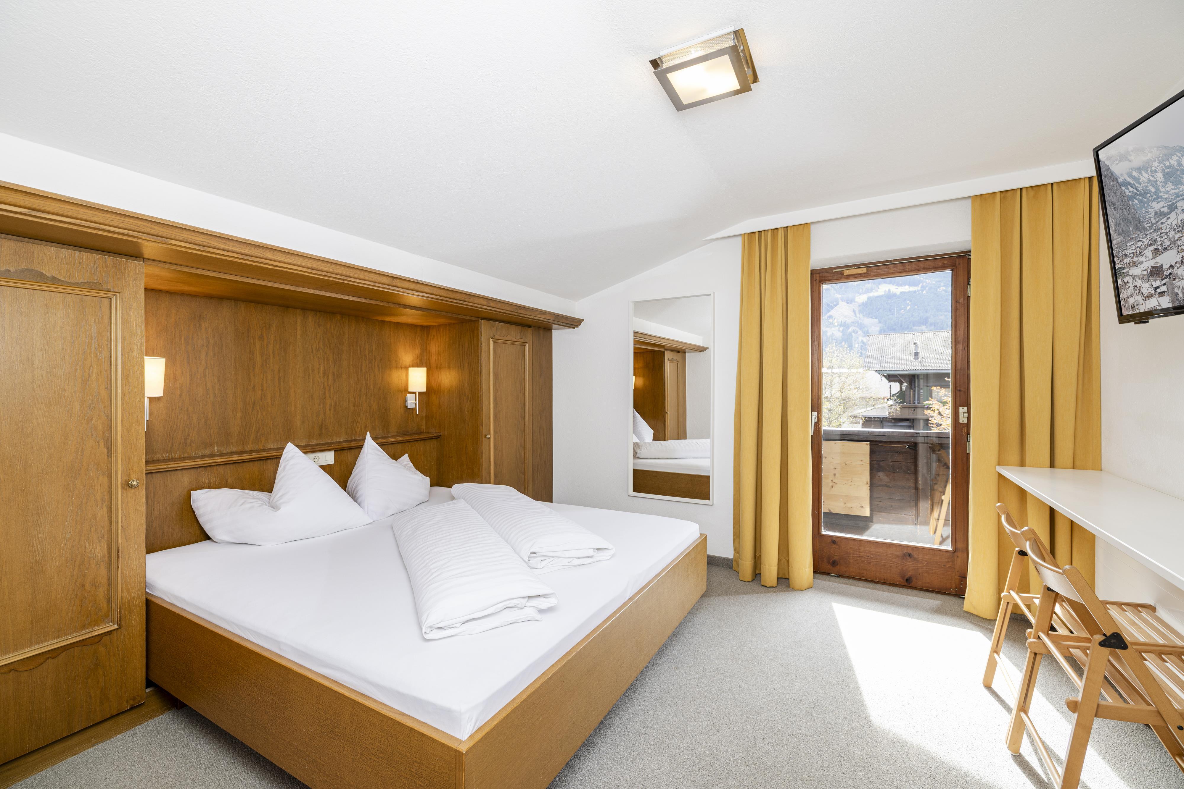 Comfortable furnished double room with shower or bath/WC, hair dryer, TV, Safe and balcony.