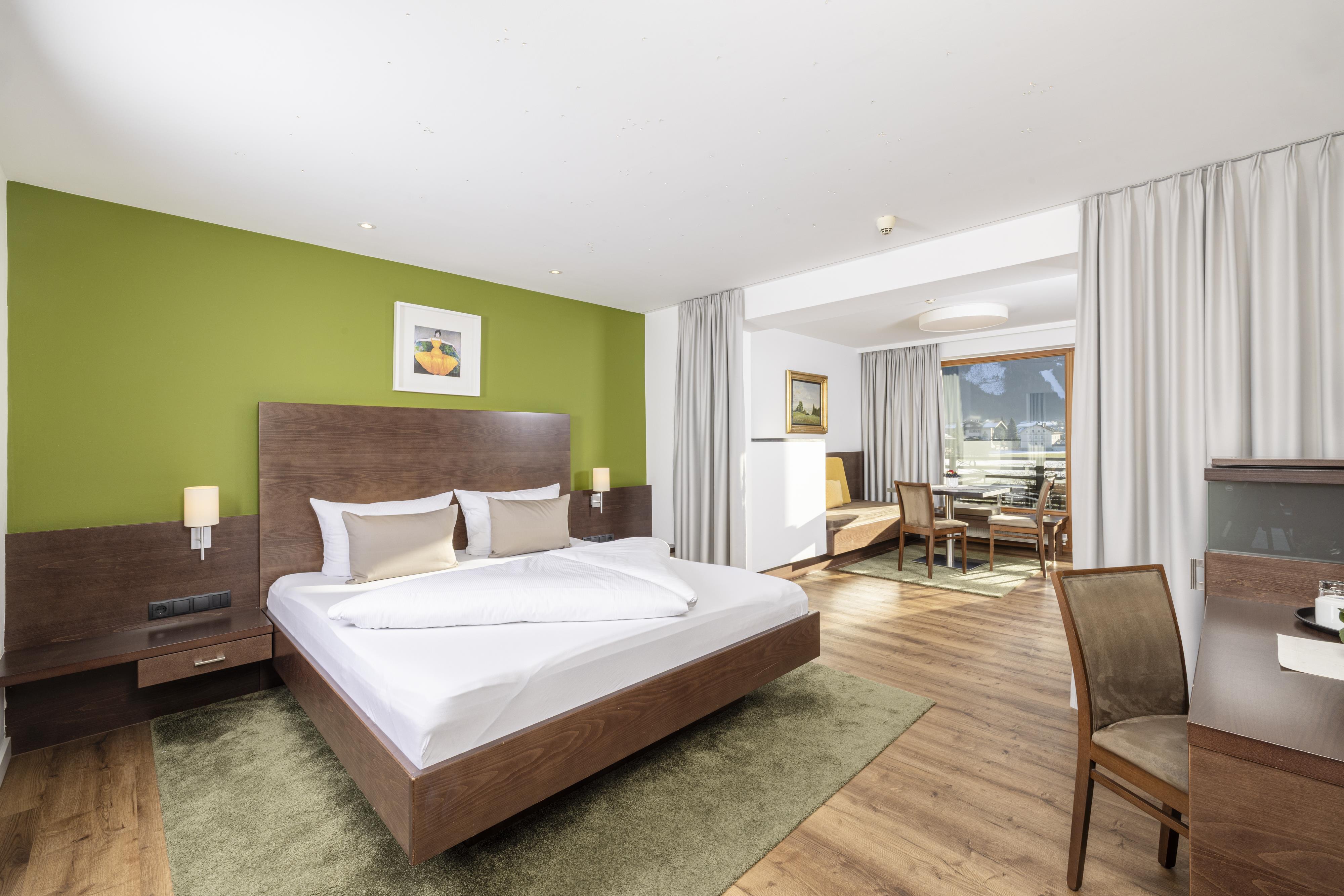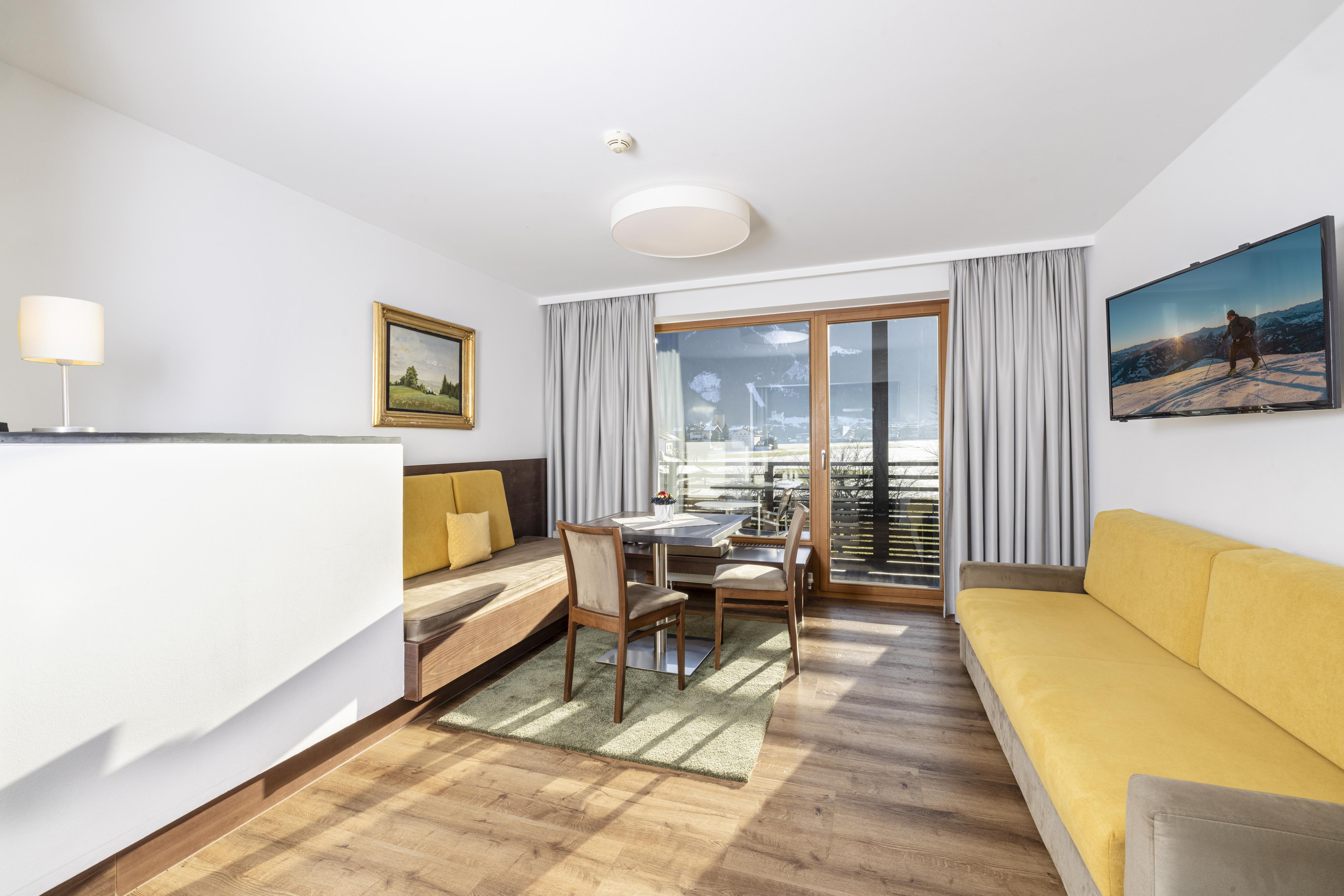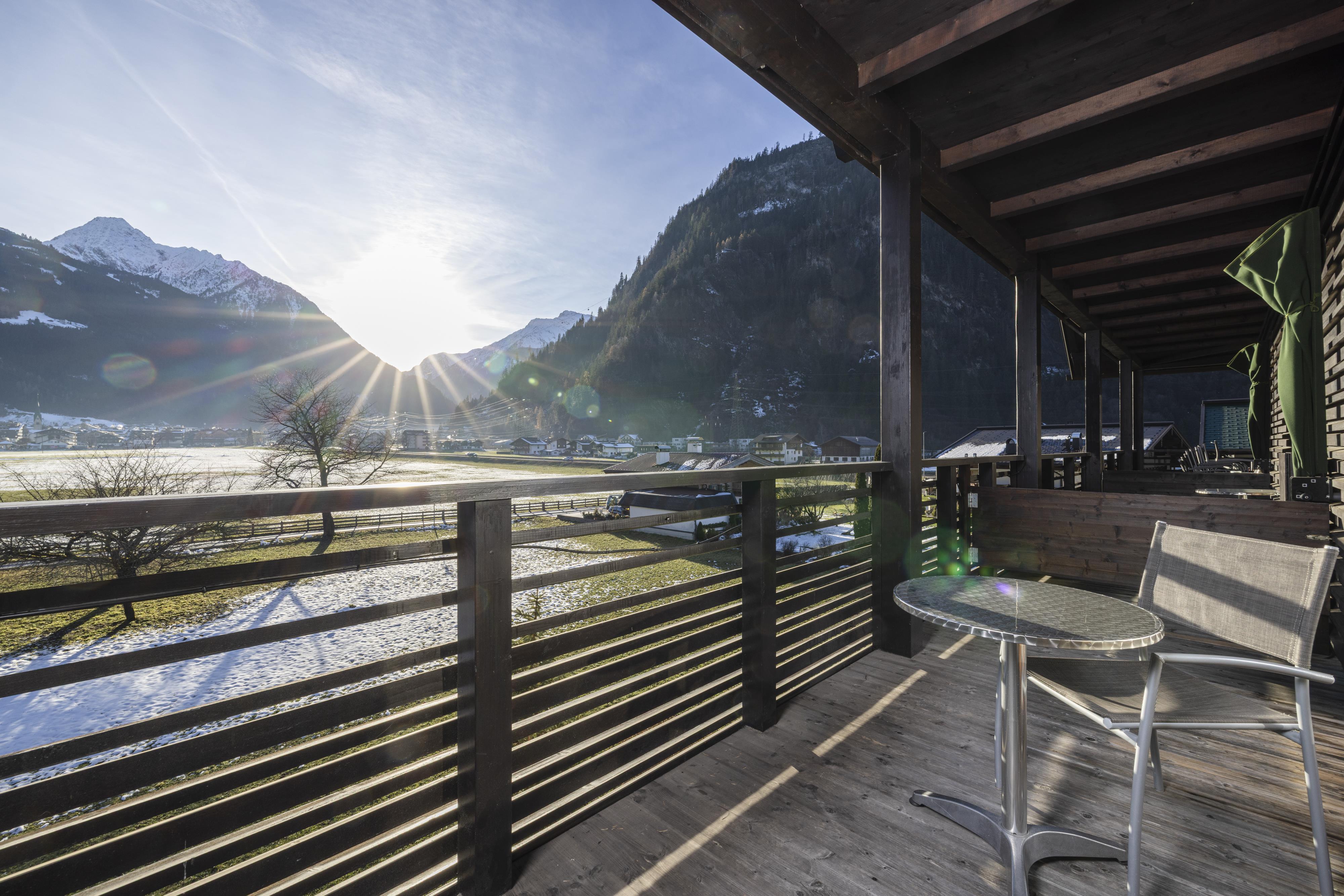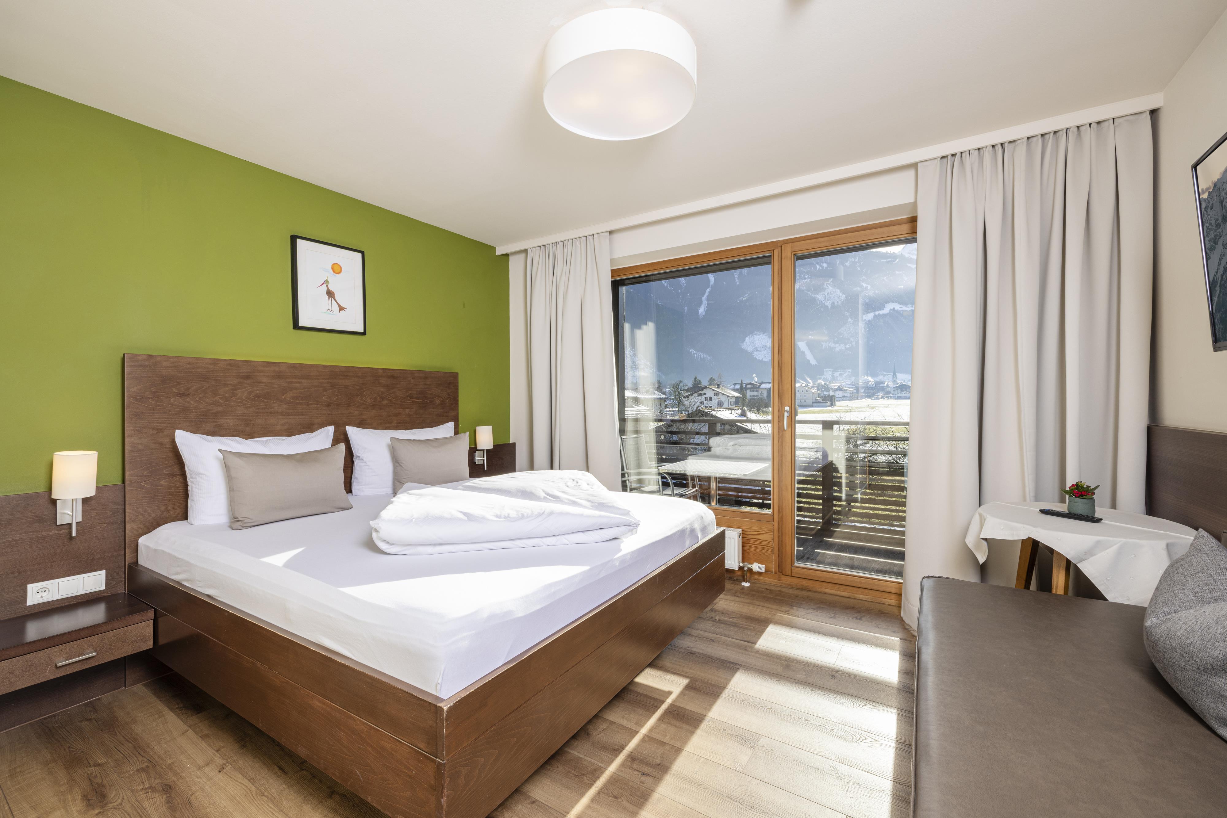 Comfortable furnished 3 - 4 bed room with shower/WC, hair dryer, TV, Safe and comfortable sitting area. Great south-balcony with wonderful panoramic view to the Zillertaler mountains.