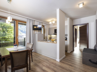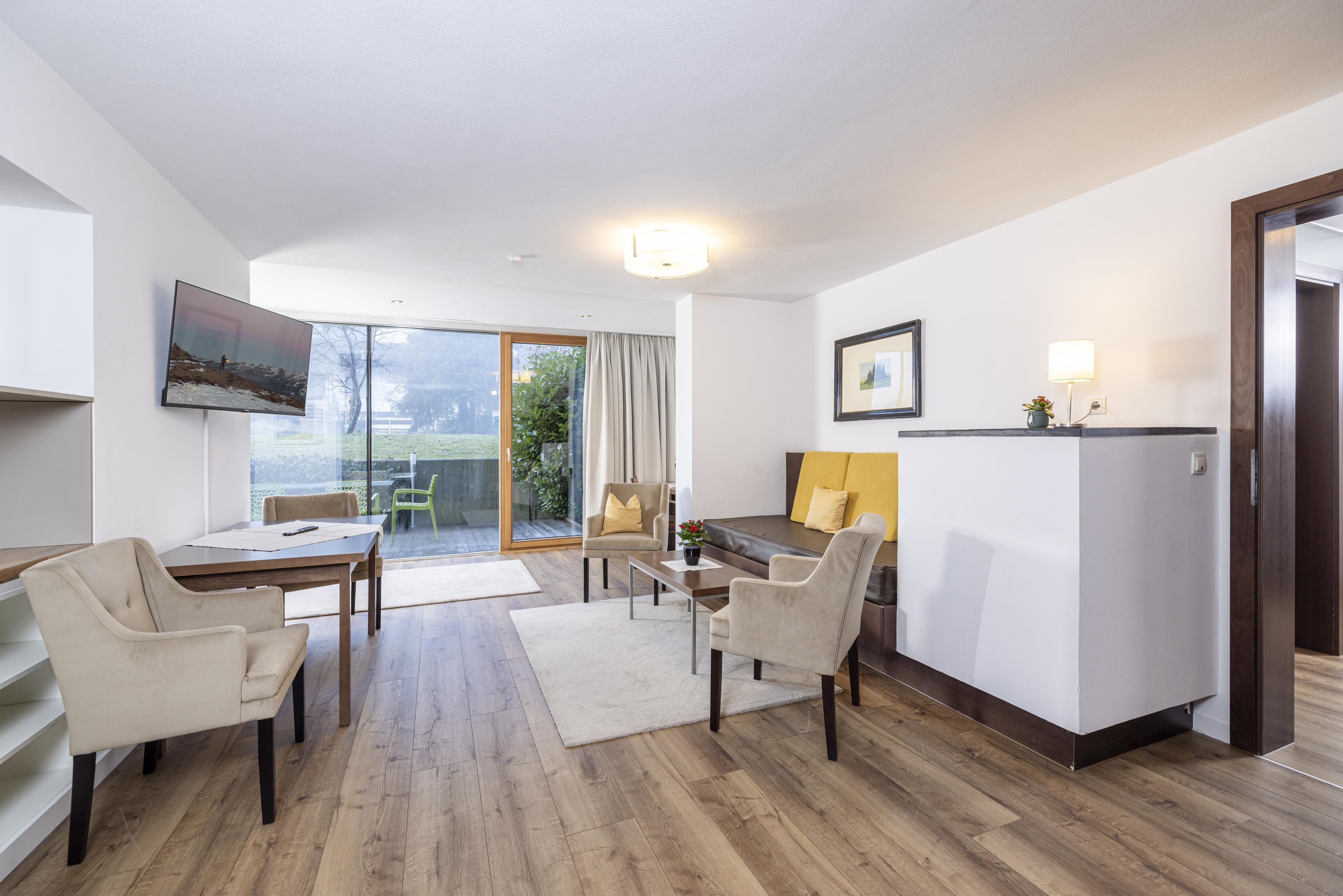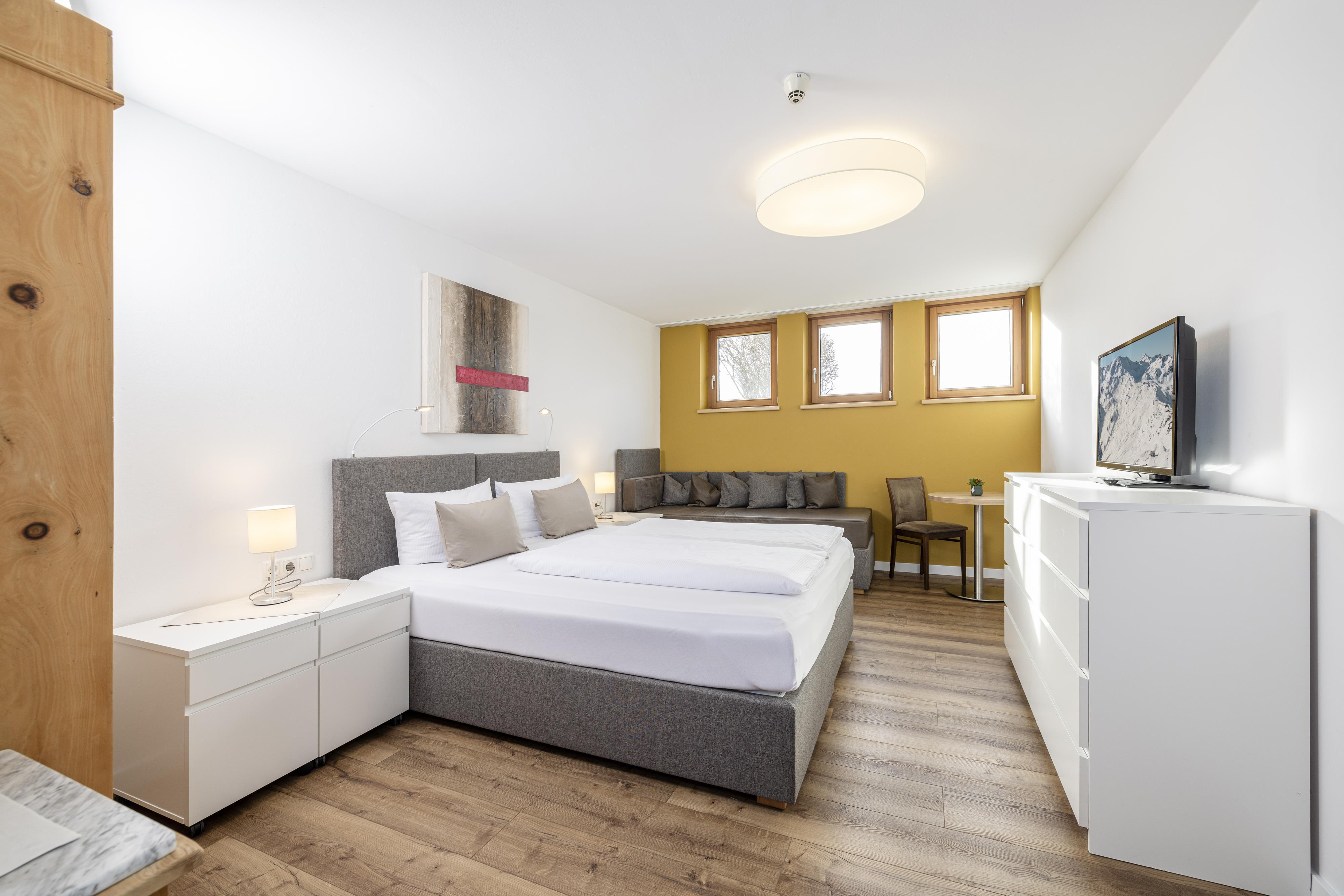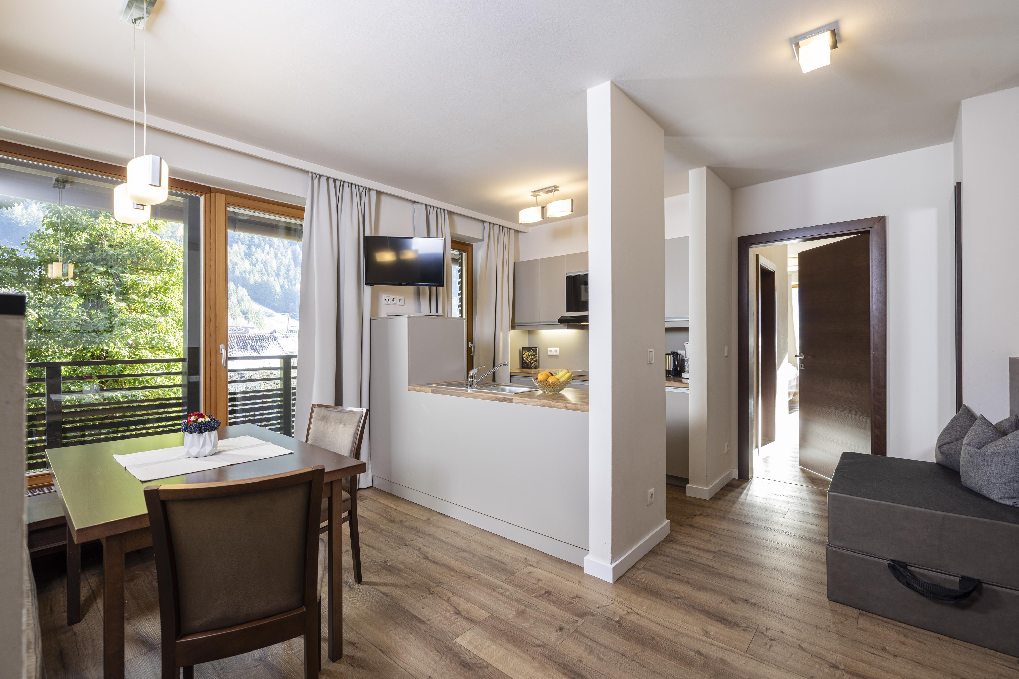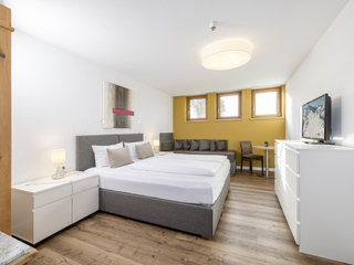Comfortable furnished 3 - 4 bed room with shower/WC, hair dryer, TV, Safe and comfortable sitting area. Great south-balcony with wonderful panoramic view to the Zillertaler mountains.