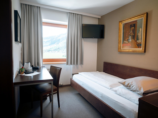 Comfortable furnished single room with shower/WC, hair dryer, TV, Safe and telephone.