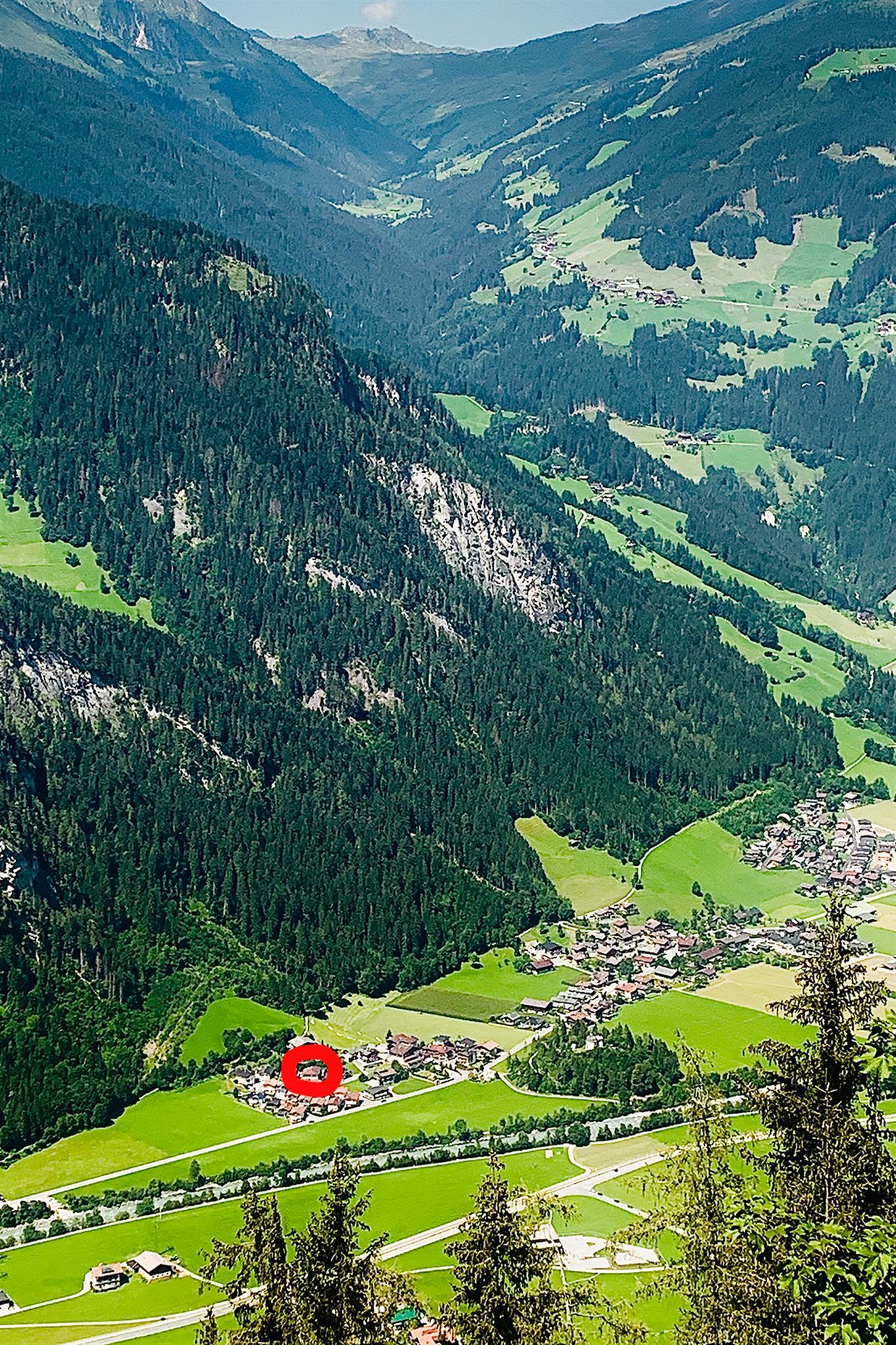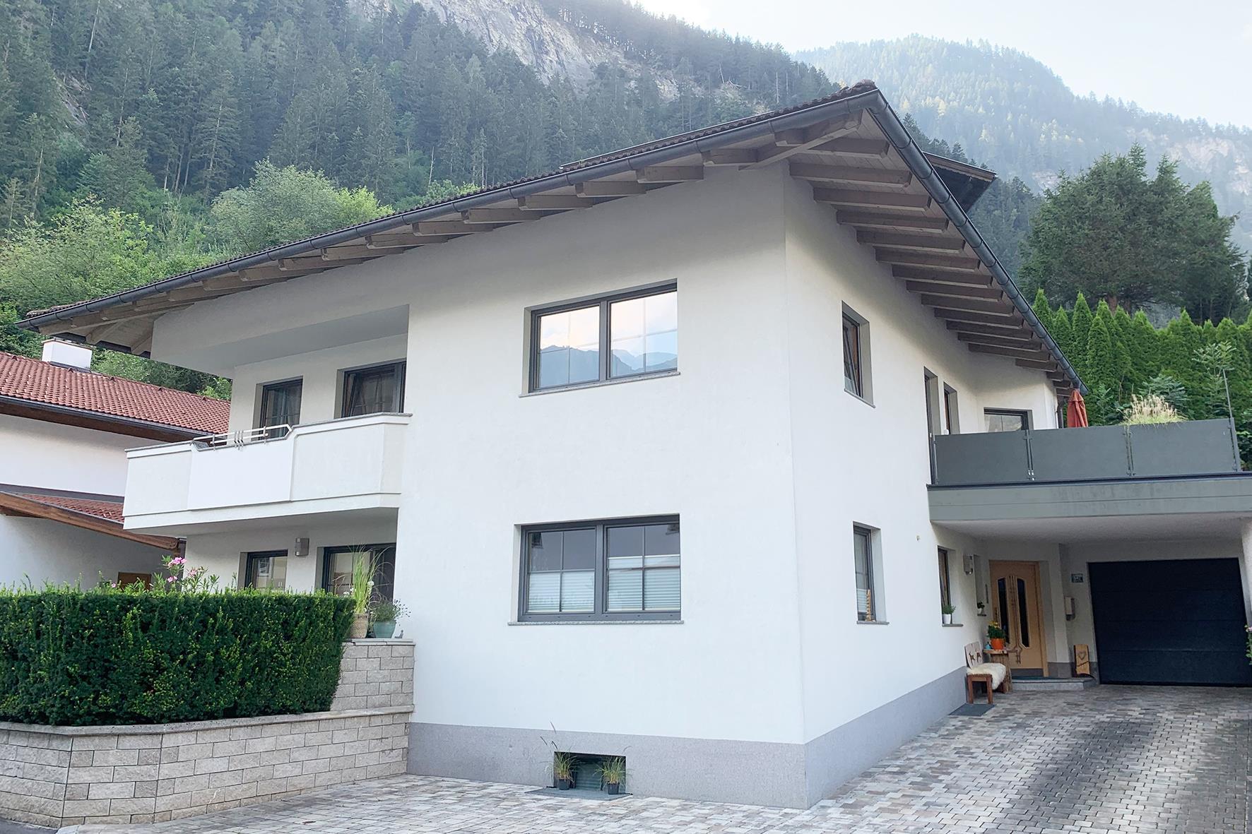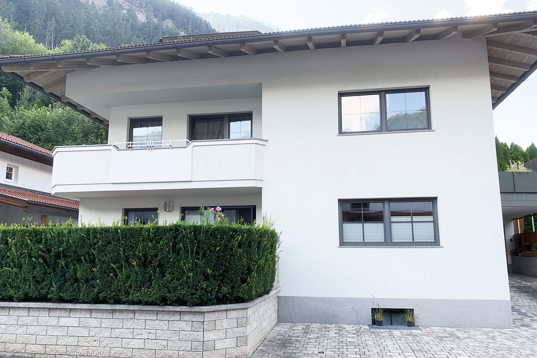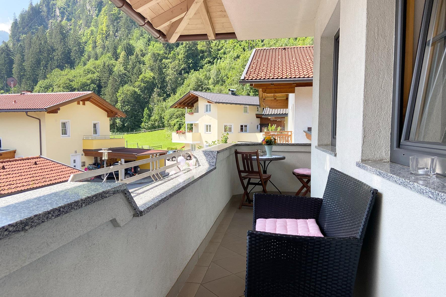 Our two apartments and our double room are on the first floor in our well-kept house. It's just shortly before Mayrhofen, the district is called Burgstall, located at a quite place near to the woods, in the middle of the alpine Zillertal. Especially for a big familly or a groupe of maximum 9 people. Then, the upper floor with balcony and roof terrace would be yours alone.