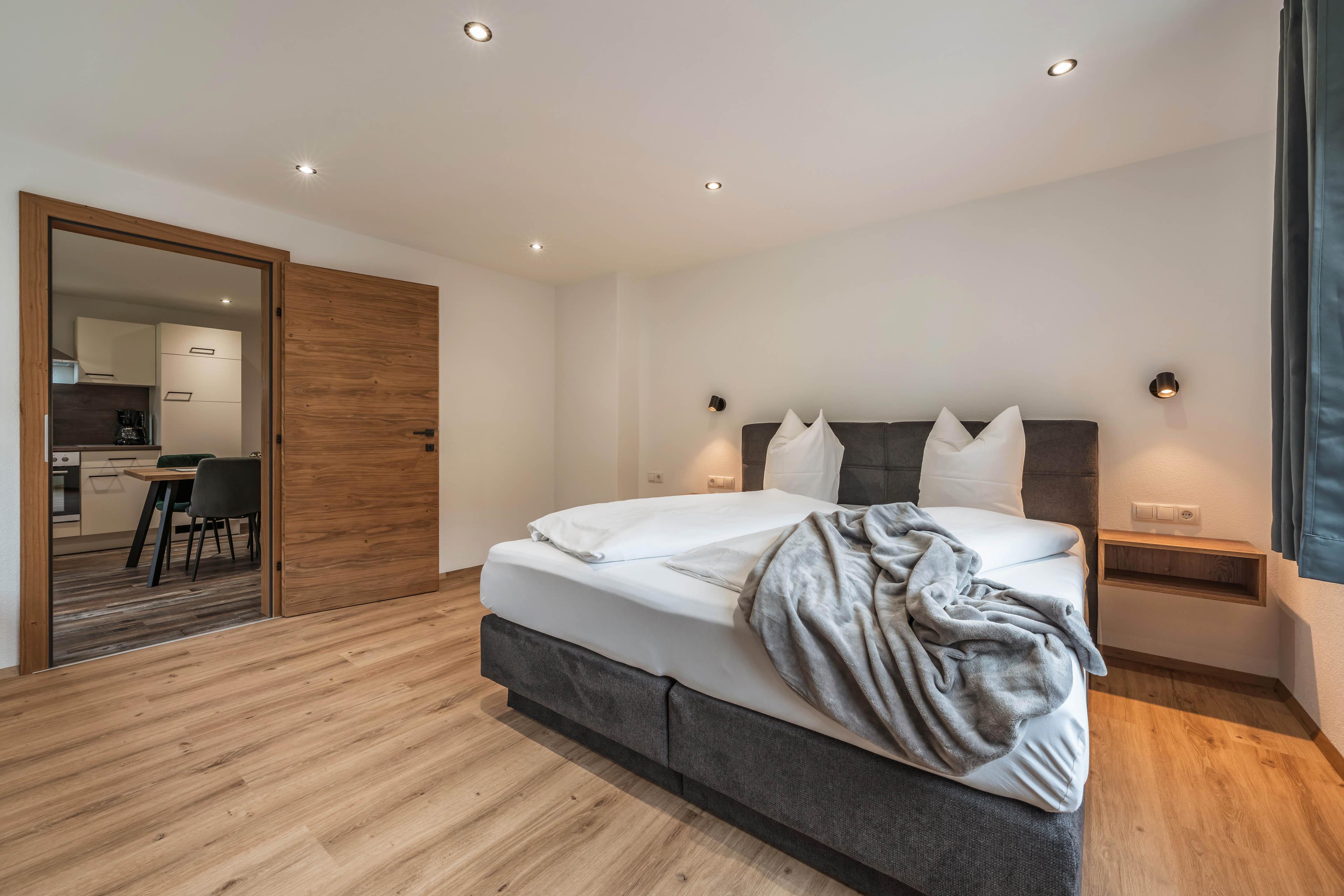 Our newly built apartments are on the 1st floor and all equipped with balconies. Free parking spaces and complimentary Wi-Fi are also available. Our large ski cellar provides ample space for your winter equipment.
