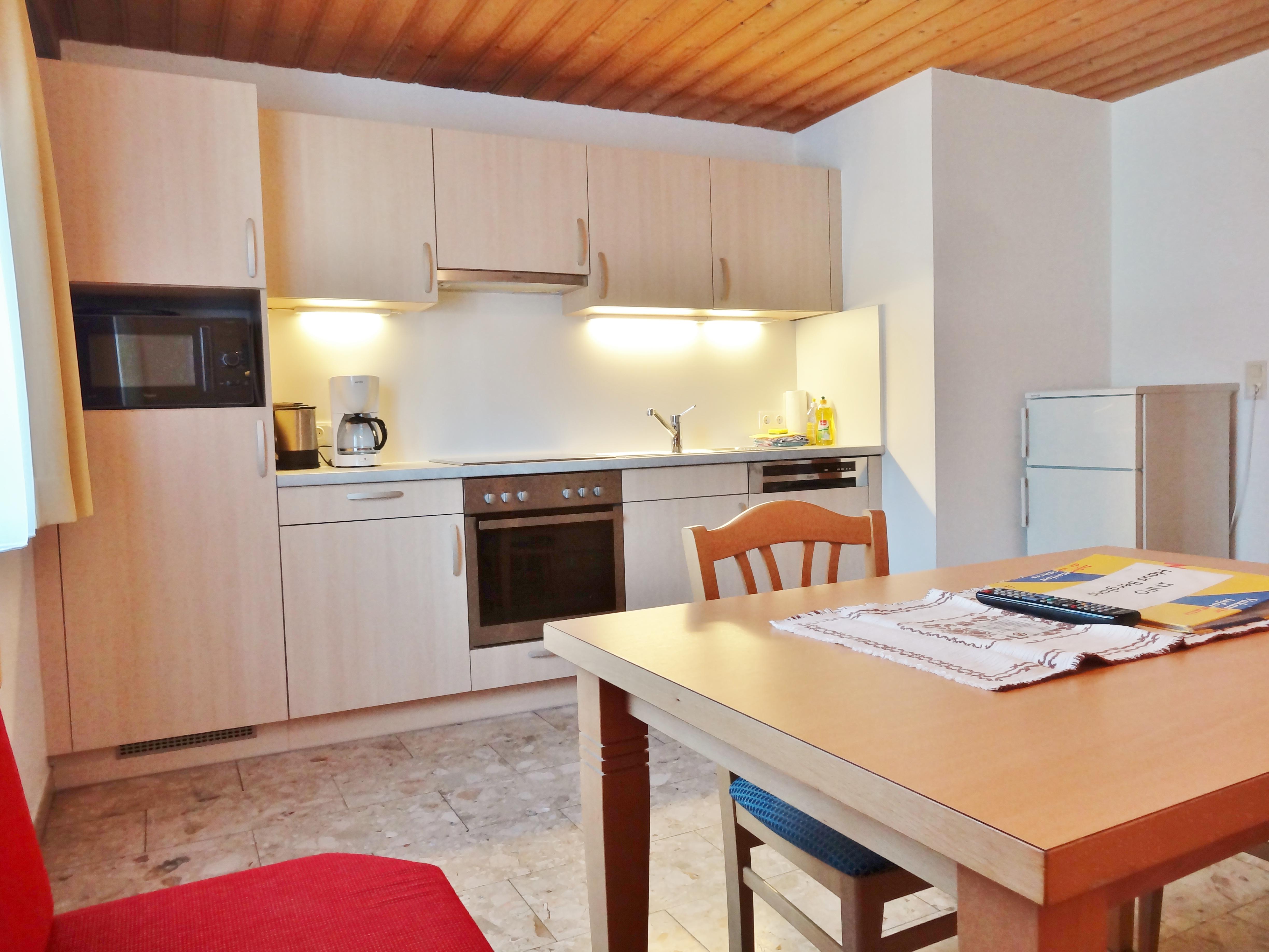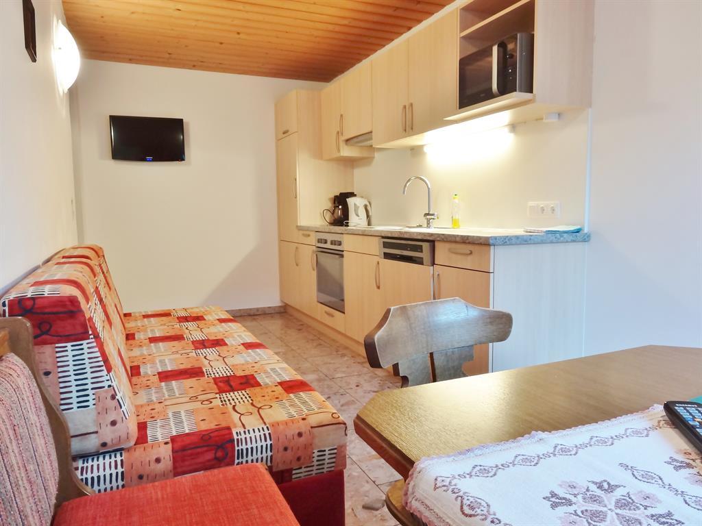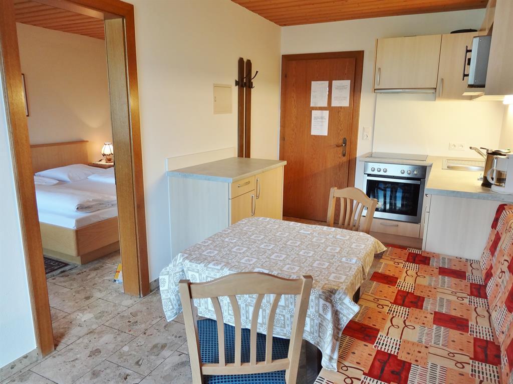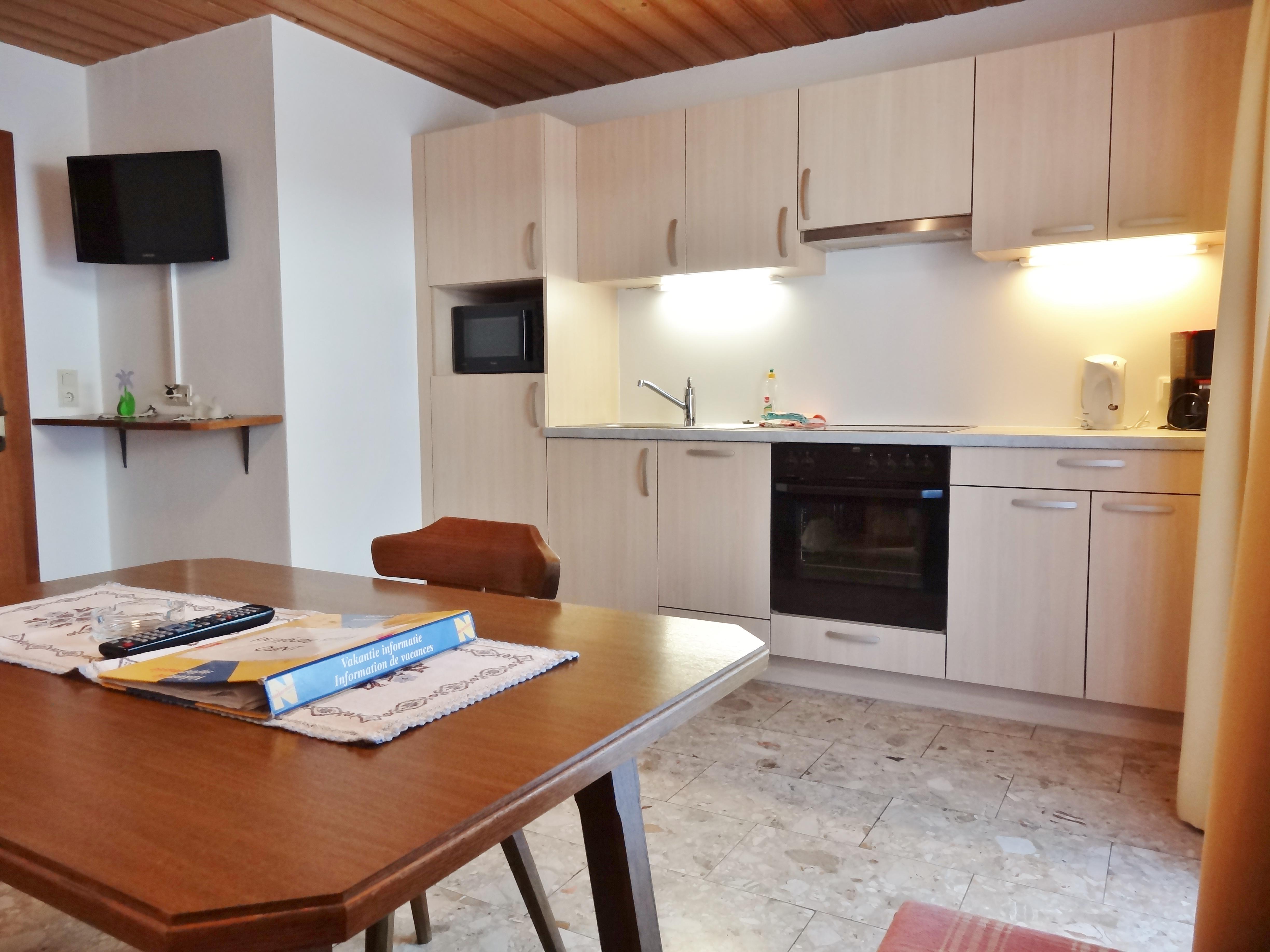Apartment for 2 persons in Haus Bergland, Hauptstraße 437 consisting of a double room (double bed) with kitchen line (4-fields-electrical-stove, oven, toaster, microwave, dish washer, fridge, coffea maker, water brewer), sitting facility and Sat-TV and a