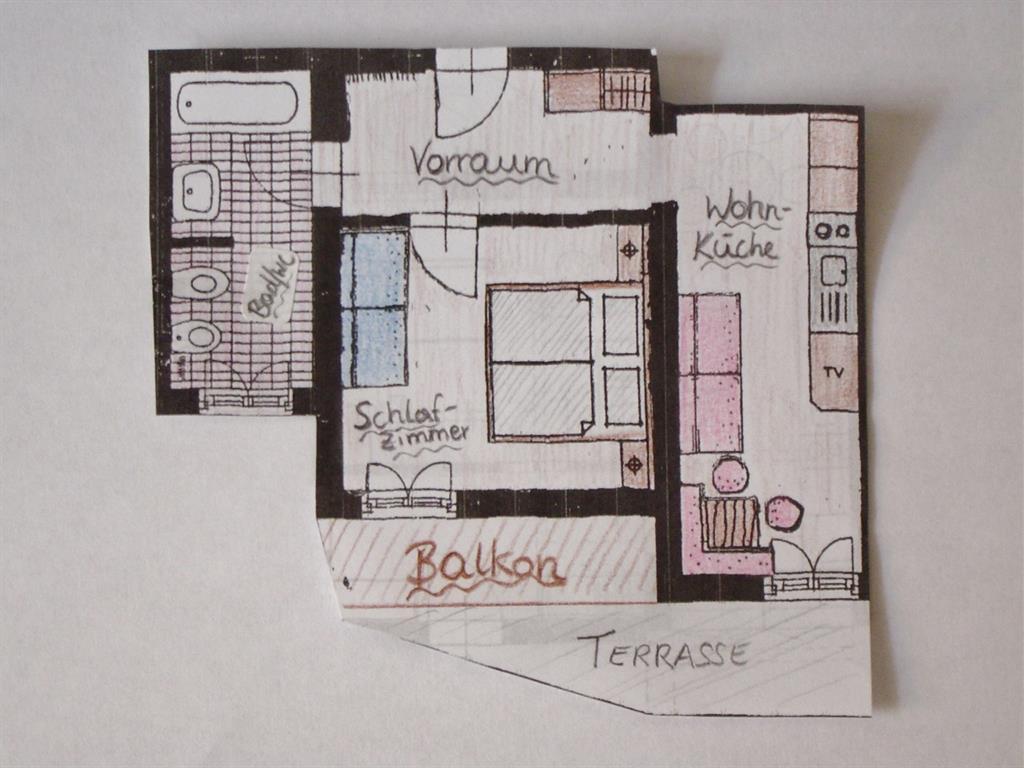 Apartment for 2-3 persons in Haus Bergland, Hauptstraße 437 consisting of 1 double room (double bed), kitchen (sitting corner, Sat-TV, 4-fields-electrical-stove, oven, microwave, toaster, dish washer, fridge, coffea maker, water brewer) and bathroom with