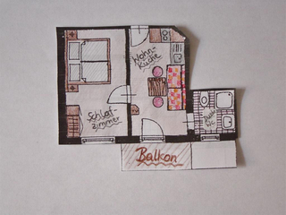 Apartment for 2-3 persons in Haus Bergland, Hauptstraße 437 consisting of 1 double room (double bed), kitchen (sitting corner, Sat-TV, 4-fields-electrical-stove, oven, toaster, microwave, dish washer, fridge, coffea maker, water brewer) and bathroom with