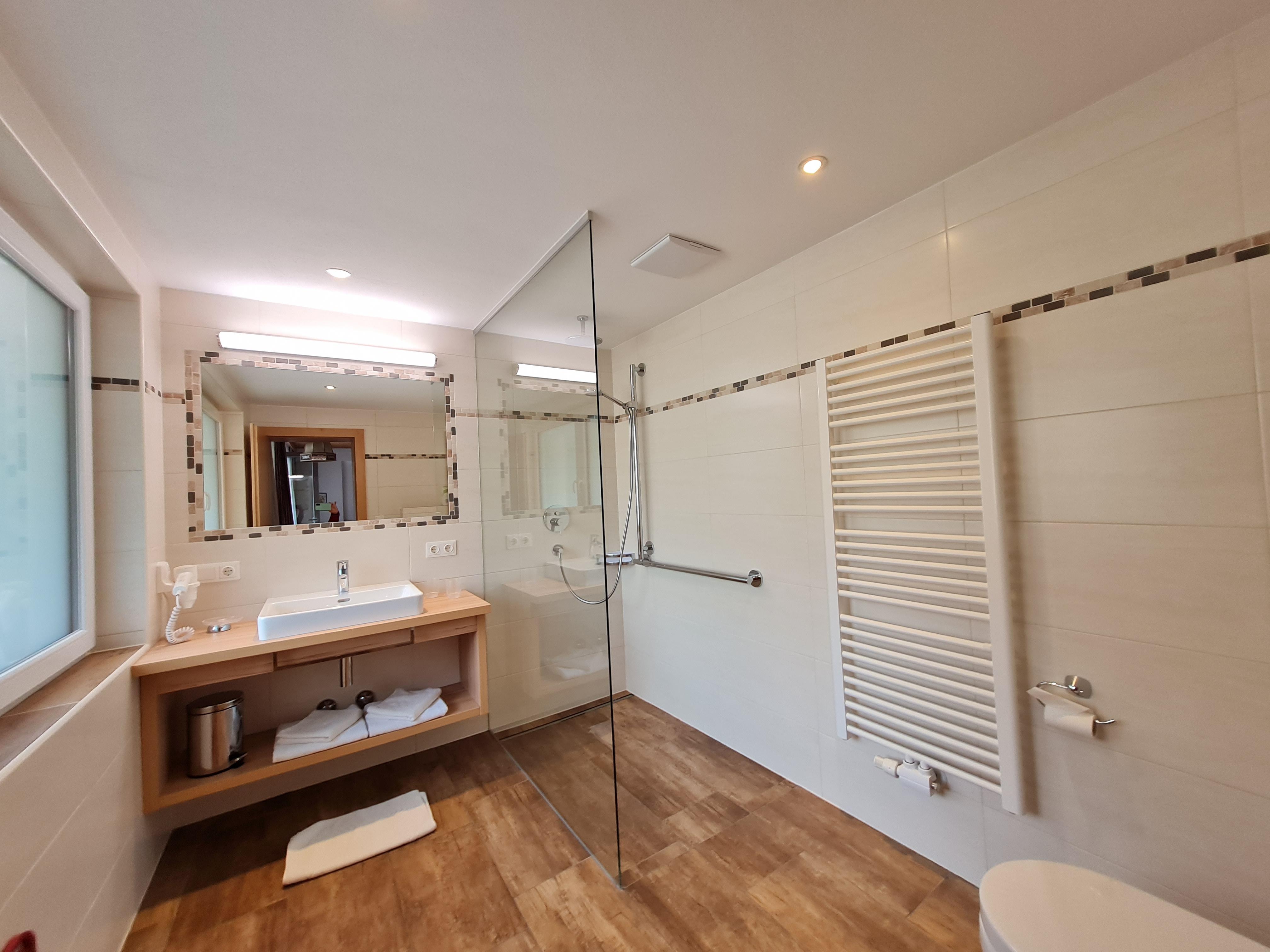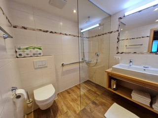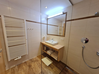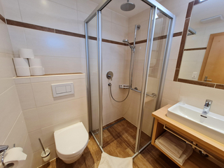 Apartment for 2 persons in Haus Bergland, Hauptstraße 437 consisting of 1 double room (double bed), kitchen (sitting corner, Sat-TV, 4-fields-electrical-stove, oven, toaster, microwave, dish washer, fridge, coffea maker, water brewer) and bathroom with