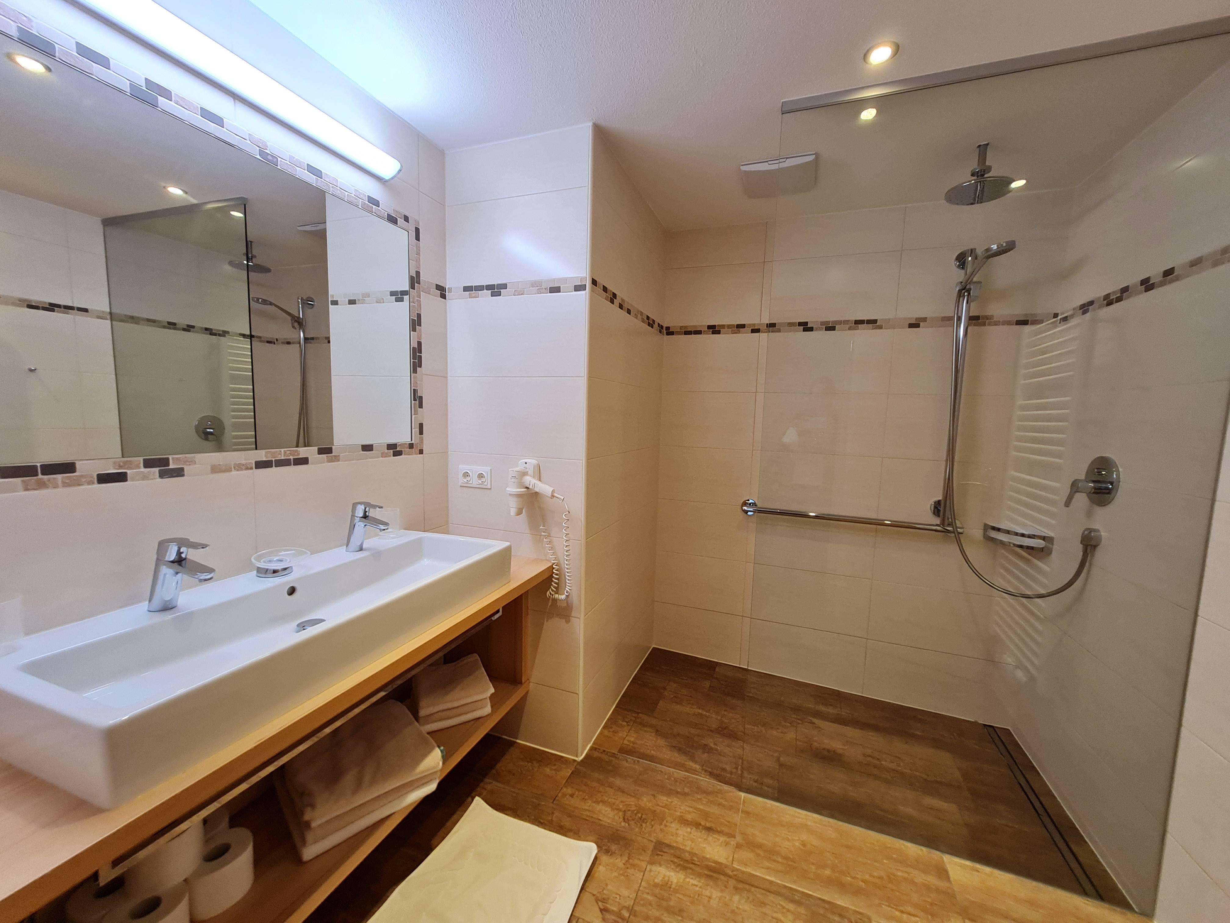 Apartment for up to 5 persons in Haus Bergland, Hauptstraße 437 consisting of 1 three-bedded room (double and single bed), 1 twin room (2 single beds), kitchen (sitting corner, Sat-TV, 4-fields-electrical-stove, oven, microwave, toaster, dishwasher,