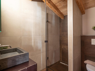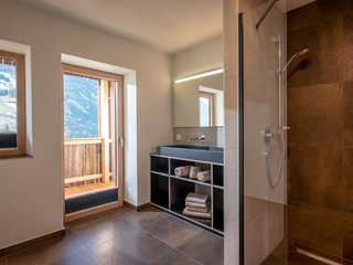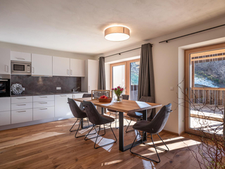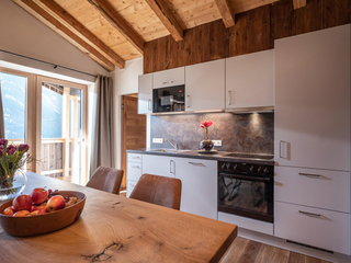 Large cozy kitchen with all comforts to relax and enjoy. All 3 bedrooms have health-promoting pine beds for a restful sleep. Relax on the spacious balcony with a view of the Zillertal Alps. Bathrooms with custom-made concrete sinks.