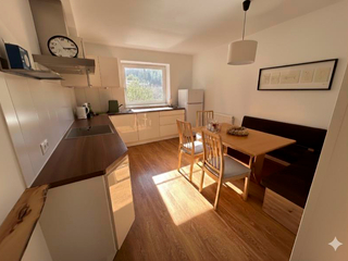 The Appartement Schneelöckchen 2 is a 80 square meter apartment on the 1st floor of our house, consisting of a kitchen, three bedrooms with double bed. The bathroom has a double vanity and a shower, the toilet is spatially separated.