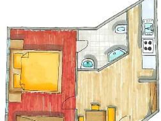 Single bedroom, 2 double rooms, lounge/kitchen, 2 X shower/WC, entrance hall with cloakroom, separate entrance, balcony with chairs, wooden flooring with rugs, quiet, situated close to a bakery, grocery store and the lifts.