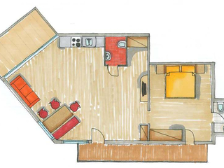 a wonderful apartement with panorama view, a large livingroom and a well equiped kitchen.