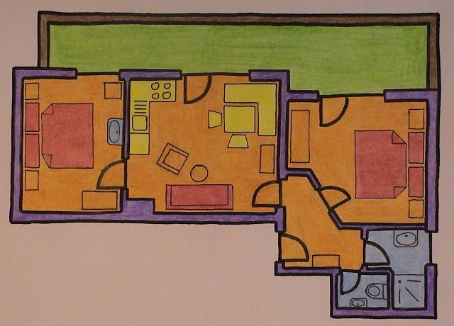 Nice comfort flat with from 50 to 60 m ² for from 2 to 5 people; 1-2 double rooms, 1 rooms with specially wash basin, shower, WC apart or shower / WC, 1 comfortable kitchen-living room or sitting room with living-room furniture and completely furnished