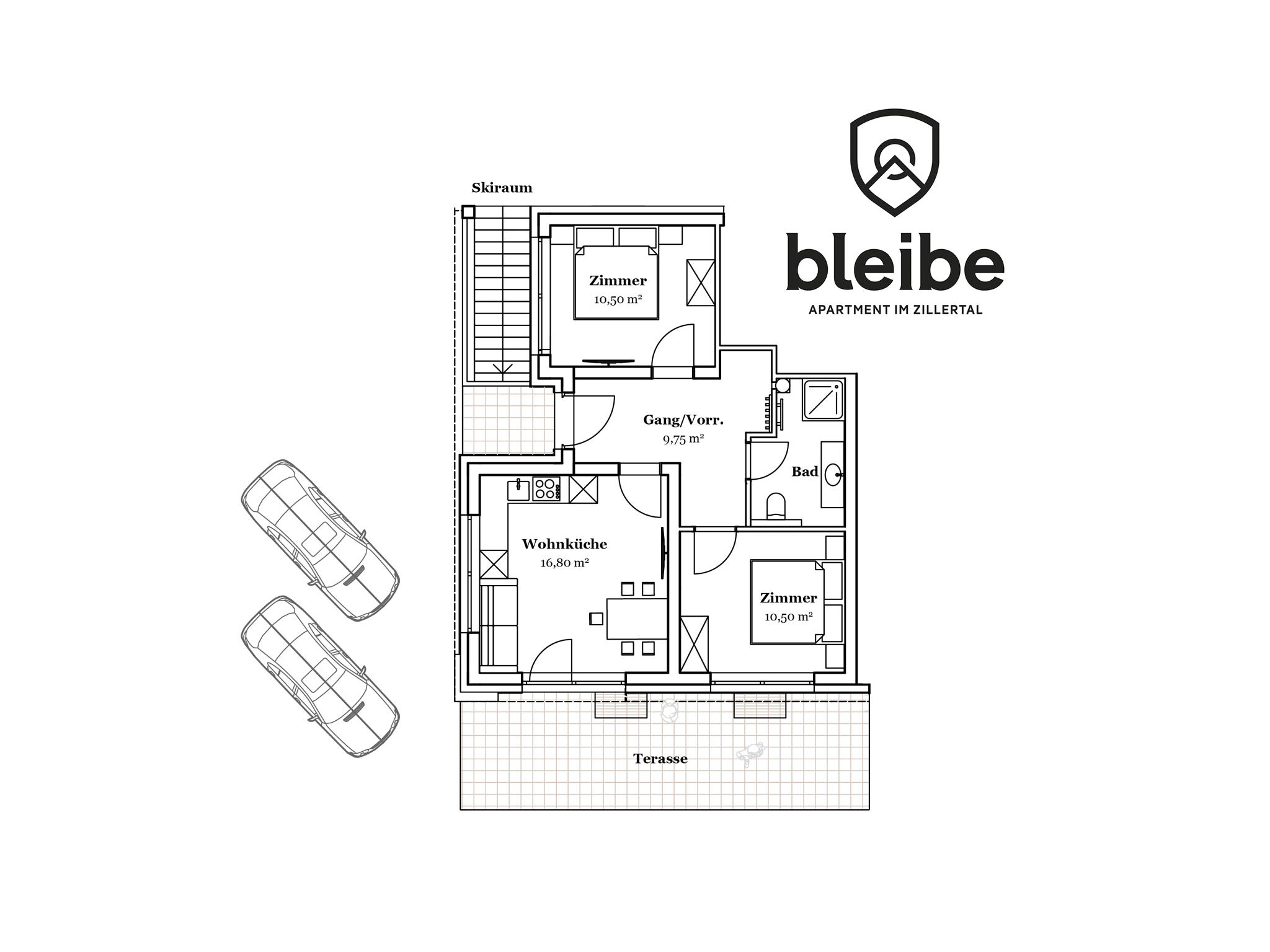 Features: - Entrance area with wardrobe - Kitchen with dining area - 2 bedrooms (each with a double bed 180 x 200 cm) - Bathroom with shower & toilet - Ski room in the basement - Free parking directly in front of the apartment Location & Surroundings: -