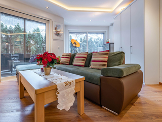 1 bedroom, living room with a sofabed fully equipped kitchen with a comfortable seating area, stove and oven, kettle, coffee maker, toaster, bathtub, shower, double sink, separate toilet, terrace.