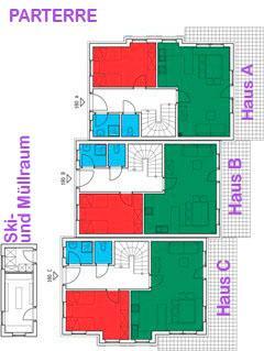 Ground Floor: Big living room with Kabel-TV and sleeping couch, terrace, open kitchen (Baking pipe, microwave, dishwasher, refrigerator, coffee machine, water digester, stove,...) 1 twin bed room, shower, seperate WC. 1st floor: 2 double bed rooms, 1
