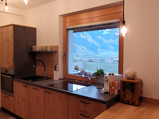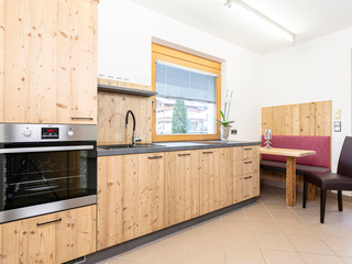 Apartment Zirbe is on the 1st floor of Villa Heimatliebe with a sunny balcony, terrace and a separate entrance. With a size of approx. 50 m², you can enjoy a completely newly installed kitchen in old wood style. The equipment includes an oven,