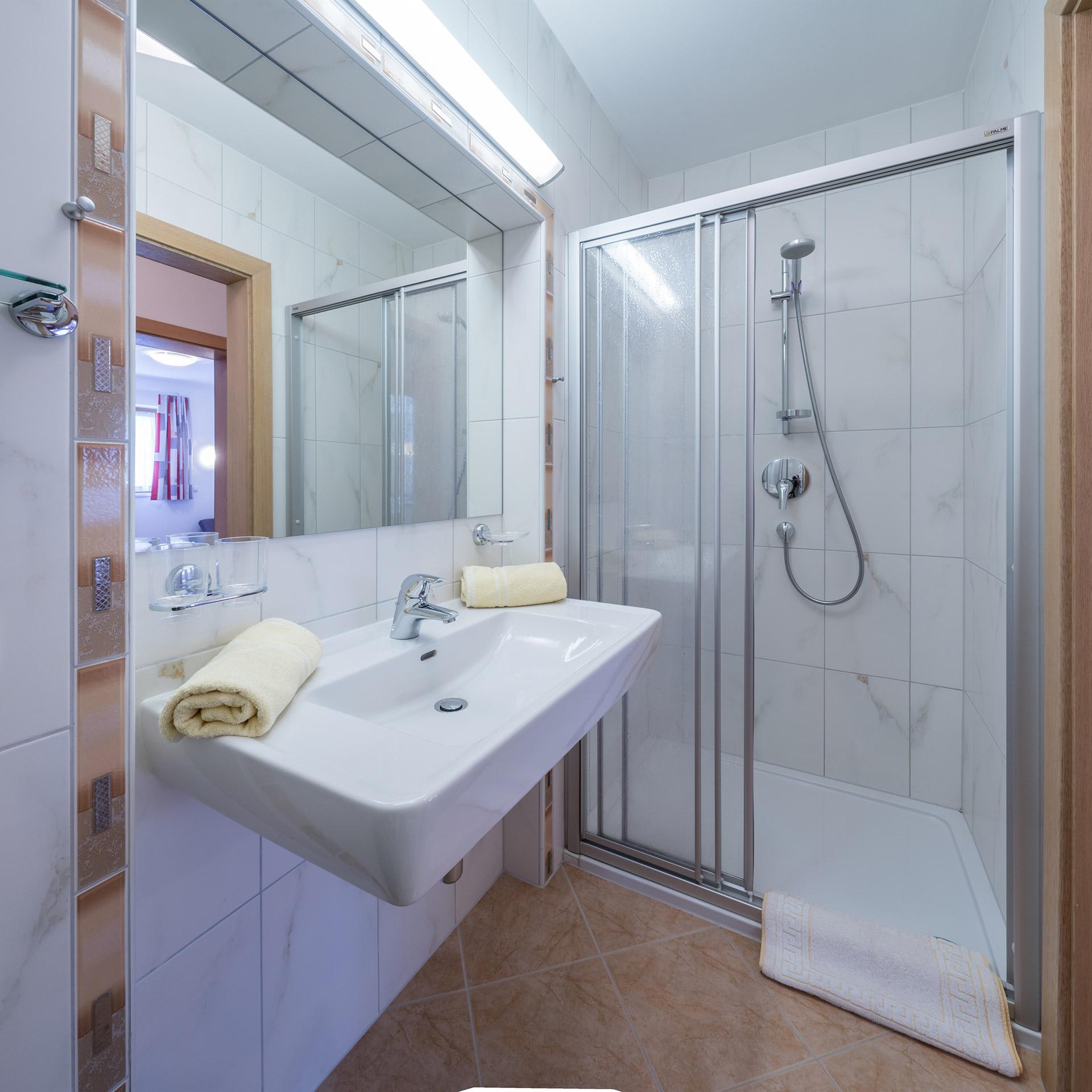 Apartment „Enzian“ 4-5 persons (62m²) 2 separate double rooms (one with additional bed), 2x shower/WC, cozy living room with top equipped kitchen, large sitting area, couch, TV, W-LAN and balcony. Without catering, bread service on request