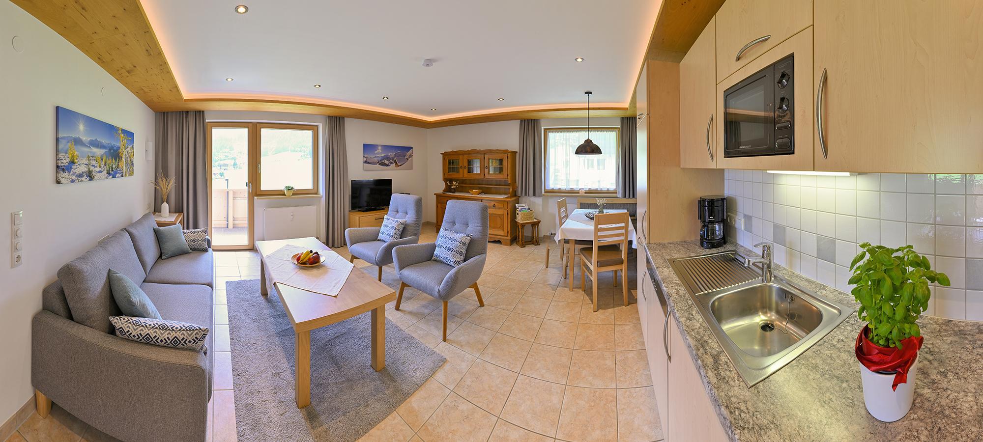 Quiet location with plenty of sun an magnificent panoramic view, car-park, children's playground, skibus stop, guests'bus stop, cross country track, food shop, butcher shop, restaurant nearby