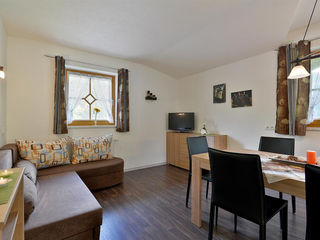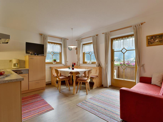 Our apartment ISABELLA/ANDREAS offers 55m2 for two to five guests, two bedrooms, shower and toilet, a spacious kitchen with sitting area, sofa bed and TV. A south-facing balcony offers a view on our mountains. Kitchen is equipped with oven, coffee maker,