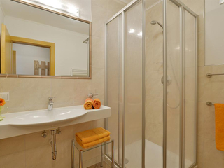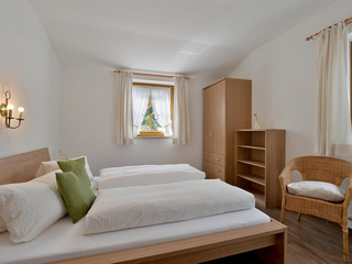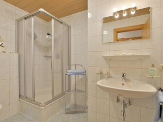Our apartment "Ahorn" offers 90m2 of space for four to eight guests. Three bedrooms, one with three beds, one with satellite TV, two showers and two toilets, hall with cloakroom and a spacious kitchen with large dining table, sofa bed and satellite TV