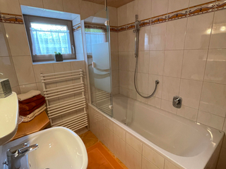 The apartment is for 2 - 5 people and very loving and cozy furnished. It has two double rooms, where it is possible to set up a third bed. The kitchen is equipped with a large dining table, kitchenette and a sofa bed. The bathroom has a bathtub, sink and