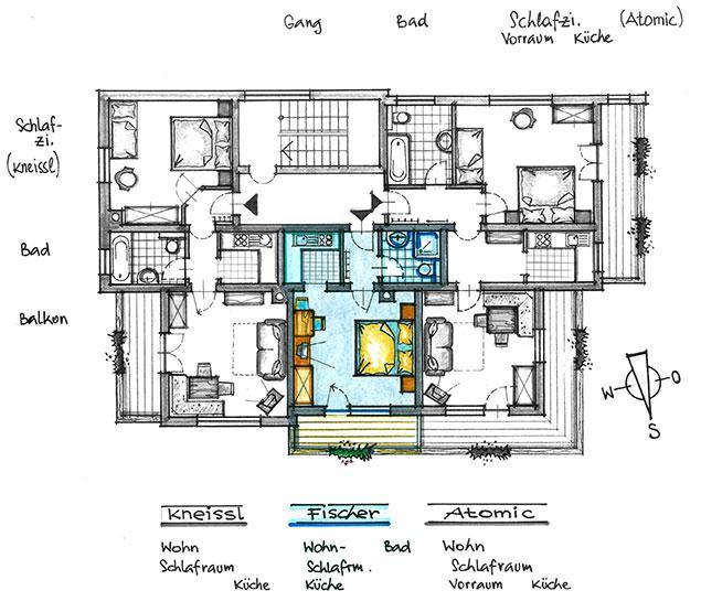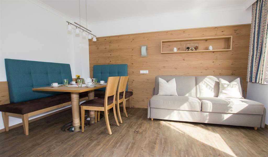 Apartment "Kneissl" for 4 to 5 people The apartment consist of an entrance hall, one triple room, one living room with a douple sofa bed and a cozy dinig area, fitted kitchen with electric stove, refrigerator, kettle and coffee machine, bathroom/WC and