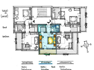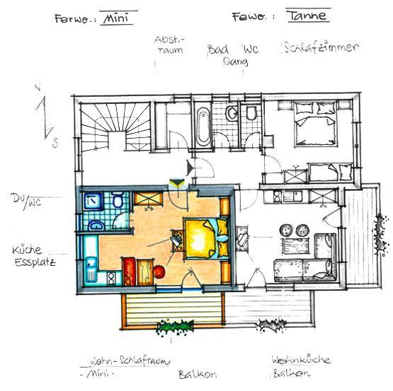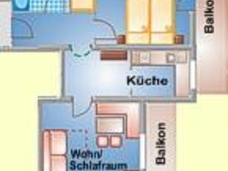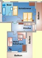 Apartment "Fischer" for 2 people The apartment consist of an entrance hall, one living room with a douple bed and a cozy dinig area, fitted kitchen with electric stove, refrigerator, kettle and coffee machine, bathroom/WC and balcony.