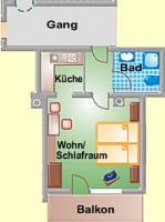ap. "Fischer"/combined living-bed-room/shower, WC