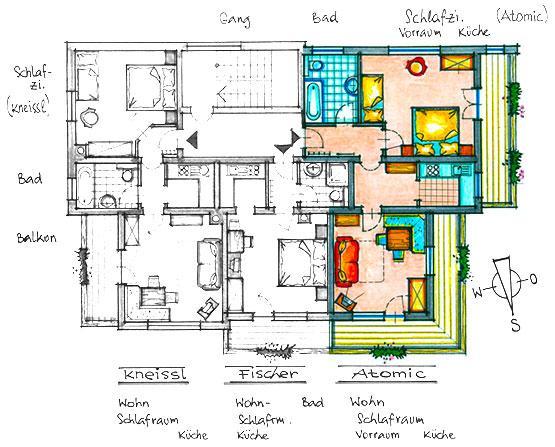 Apartment "Atomic" for 4 to 5 people The apartment consist of an entrance hall, one triple room, one living room with a douple sofa bed and a cozy dinig area, fitted kitchen with electric stove, refrigerator, kettle and coffee machine, bathroom/WC and