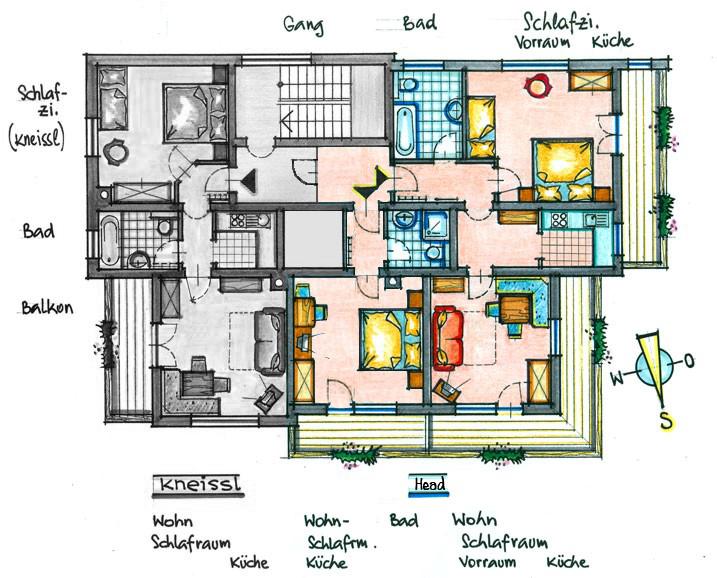 Apartment "Head" for 3 to 5 people The apartment consist of an entrance hall, 1 triple room with bathroom/WC, 1 double room with shower/WC, 1 living room with cozy dining area, fitted kitchen with electric stove, refrigerator, kettle and coffee machine,