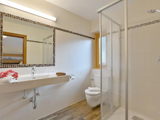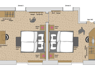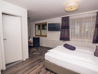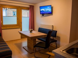 apartment Marion 3-4 bzw. 5-6 pax. This apartment offers 2 bedrooms, connecting door. Each room is equipped with a private bathroom with shower and WC, a balcony with mountain view and a TV with cable channels. The kitchen of the apartment is fully