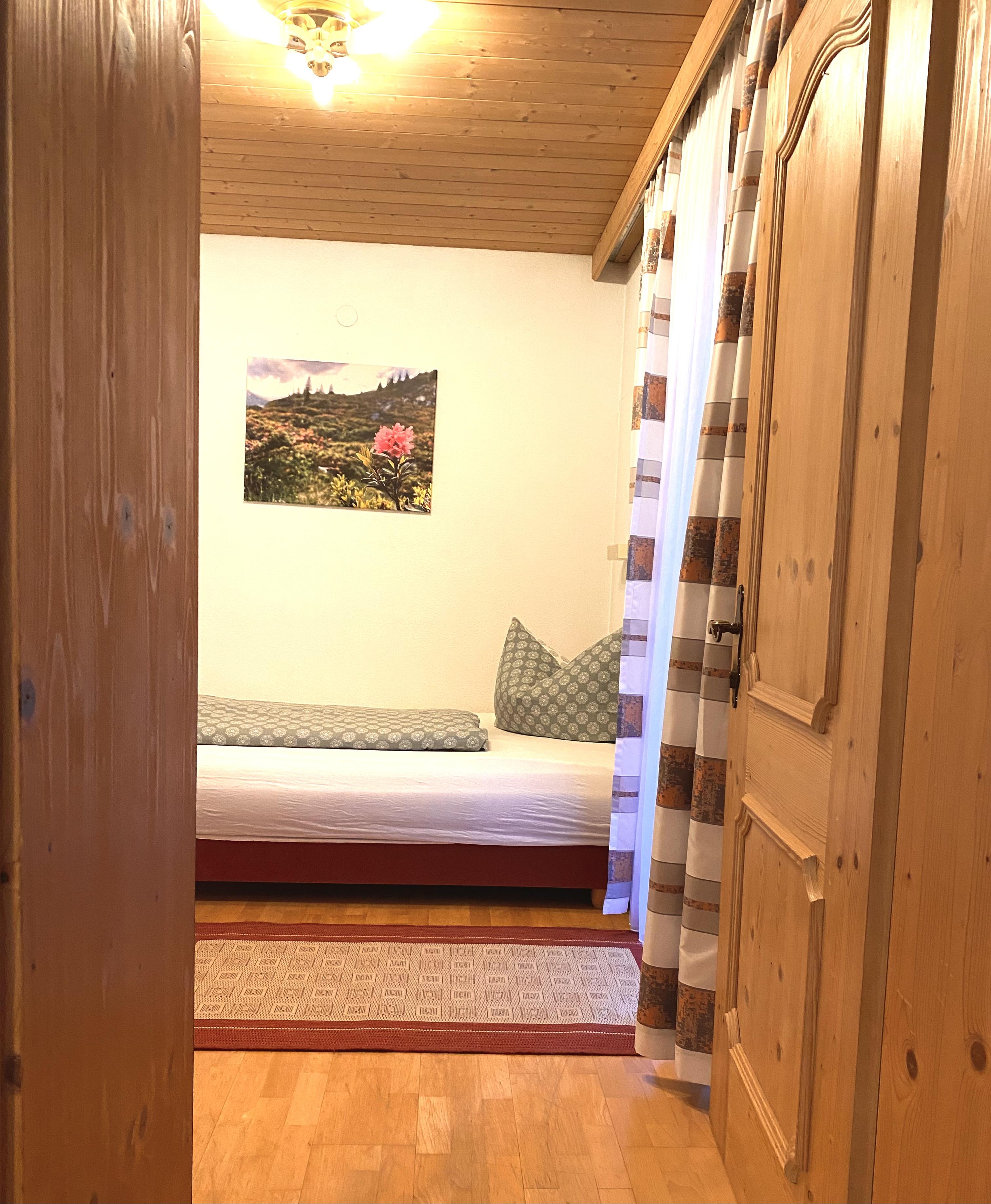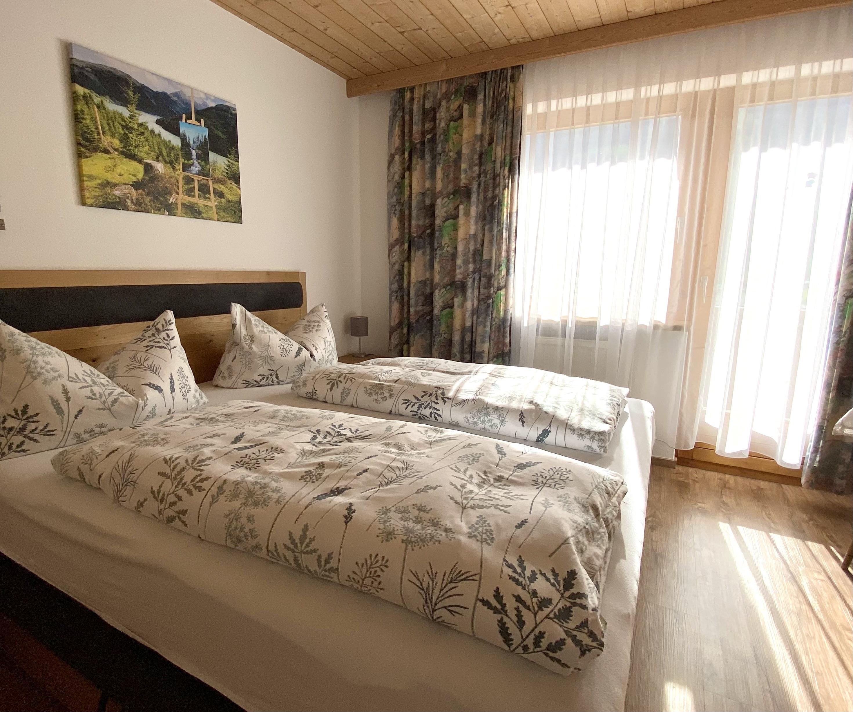 Our newly renovated guest rooms, measuring 20m², invite relaxation with a view of our beautiful mountain landscape. The bright room features a comfortable design and also includes a sun-facing balcony.