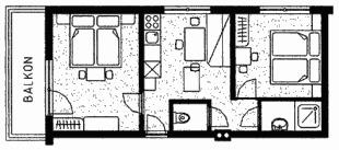 apartment/2 bedrooms/shower, WC