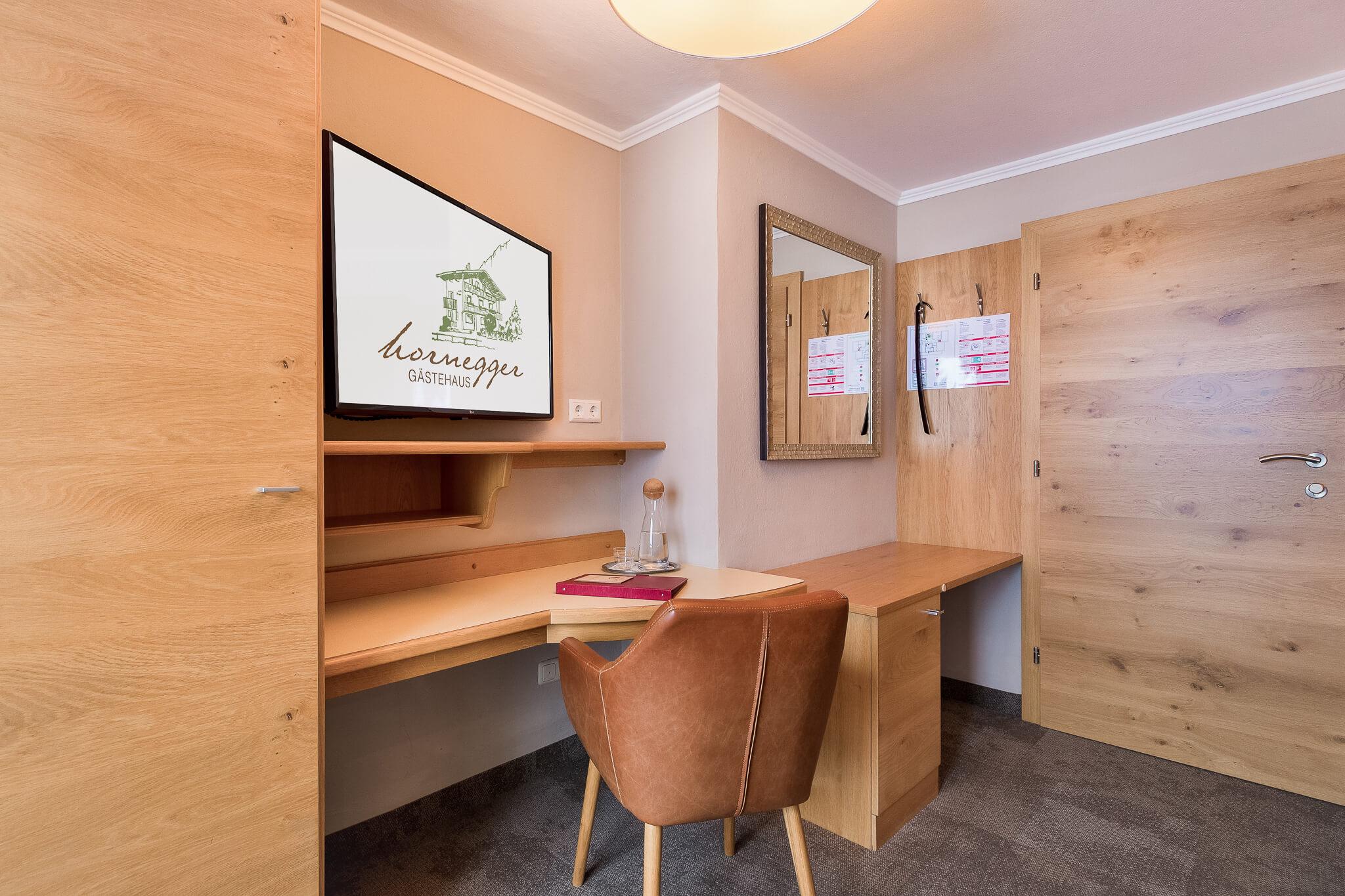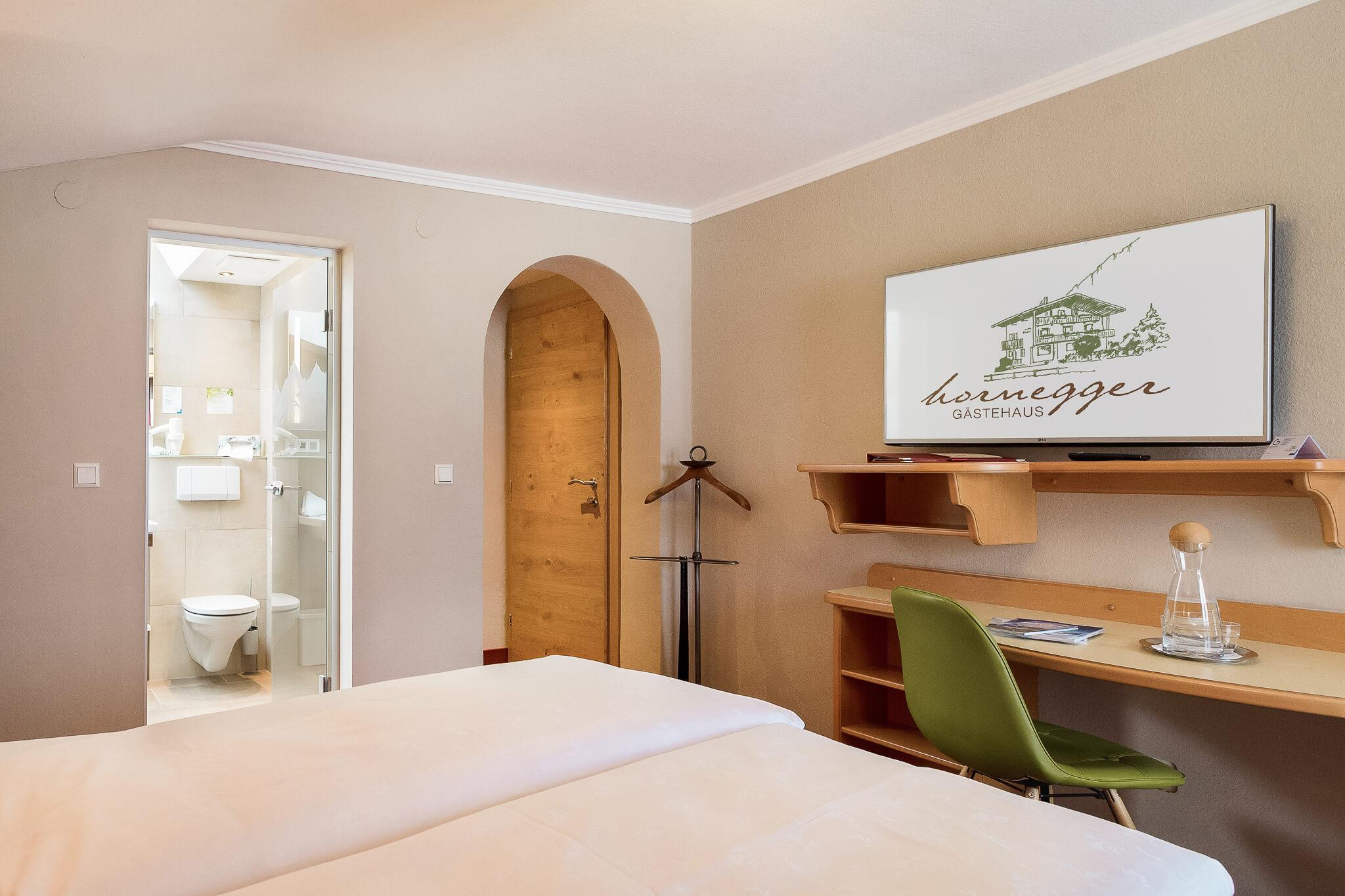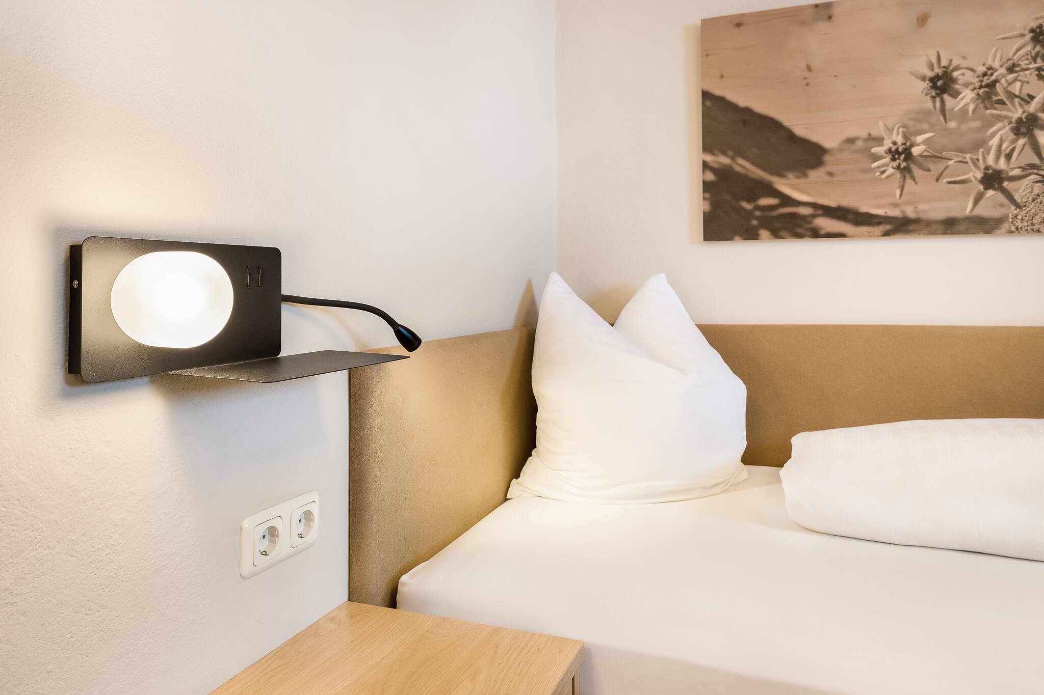The rooms in our house are all individually and contemporary furnished and combine modern living comfort with traditional elements. High-quality beds with reading and bedside lamps, wardrobe, small desk, flat screen TV with radio, free WiFi and a room