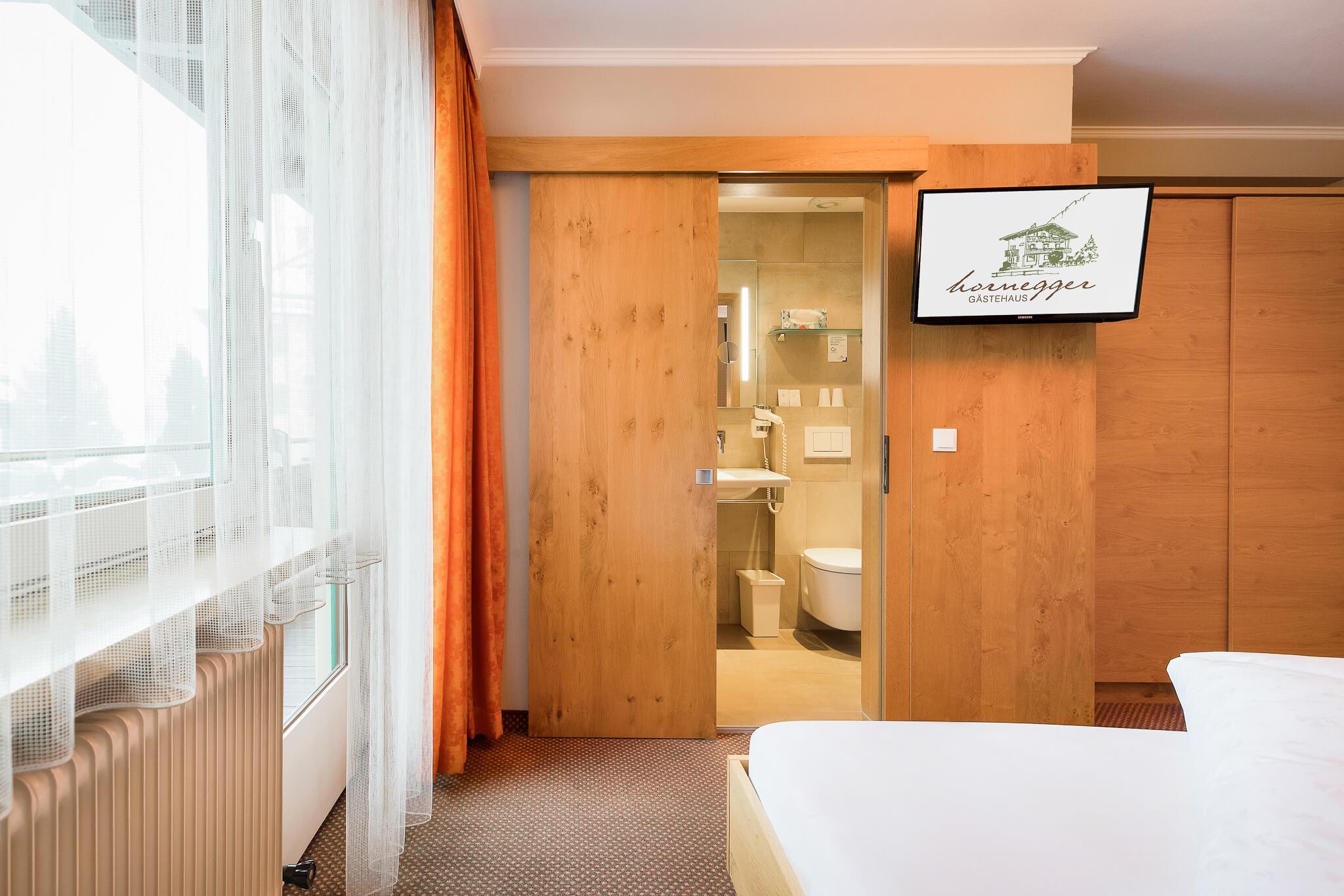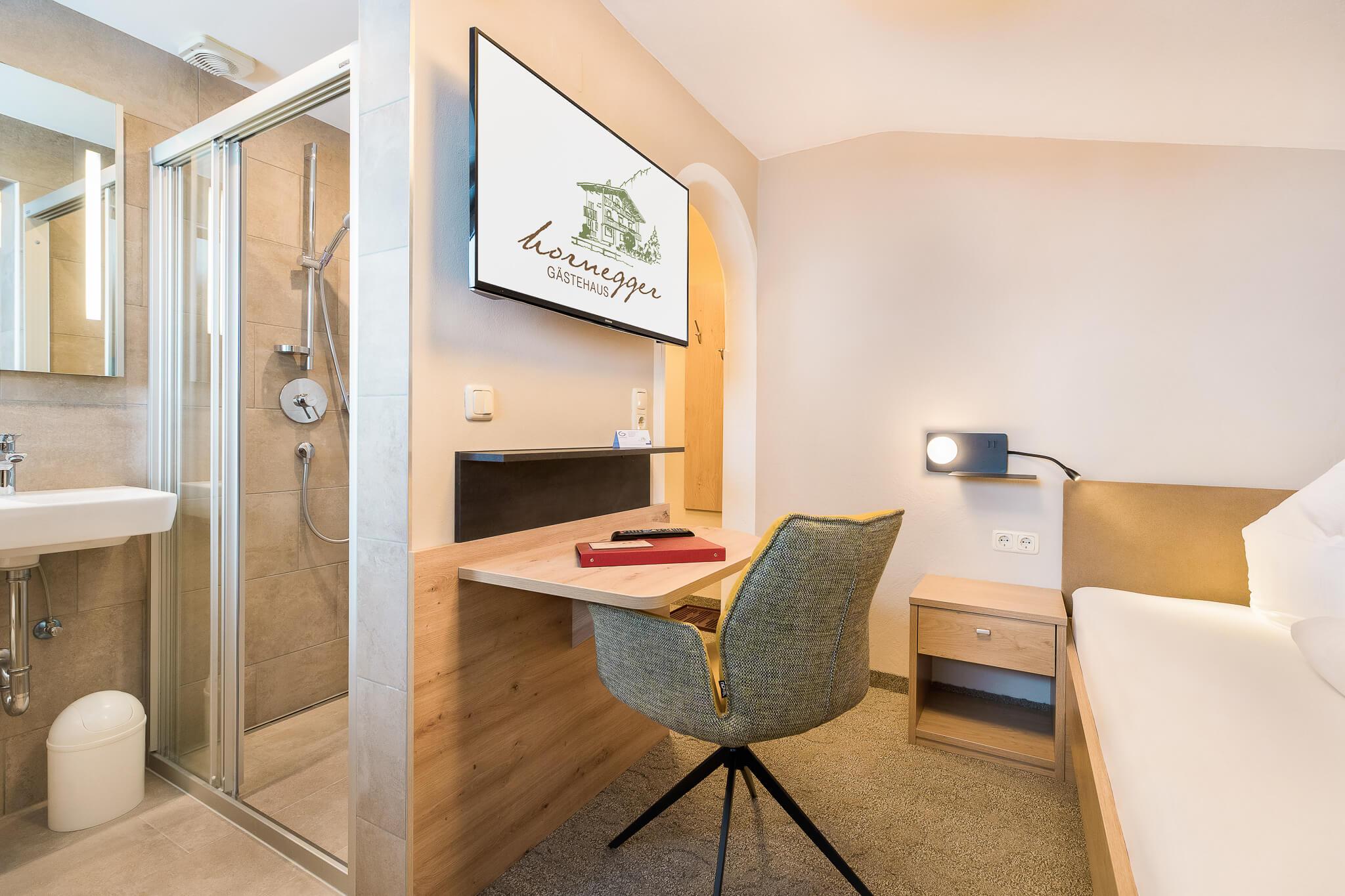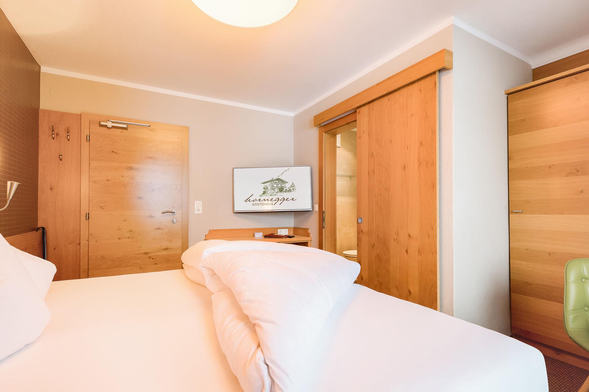 The rooms in our house are all individually and contemporary furnished and combine modern living comfort with traditional elements. High-quality beds with reading and bedside lamps, wardrobe, small desk, flat screen TV with radio, free WiFi and a room