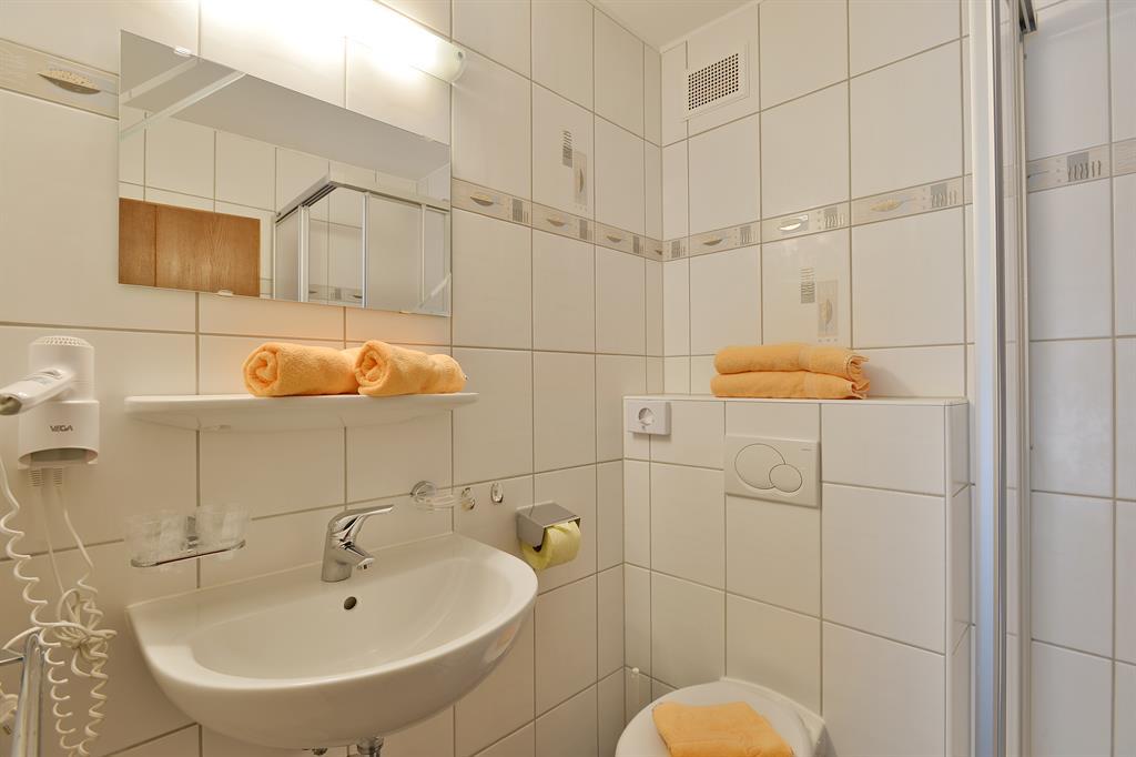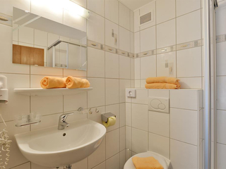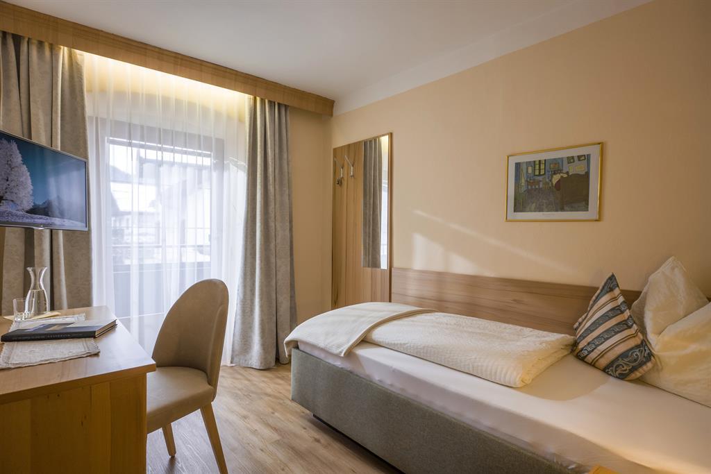 The single room can be booked to an apartment or used by alone travelers. The room is equipped with balcony, shower / WC, cable / TV, free W-Lan, safe and hairdryer. Bed linen and towels are in the room. The room is offered without breakfast and